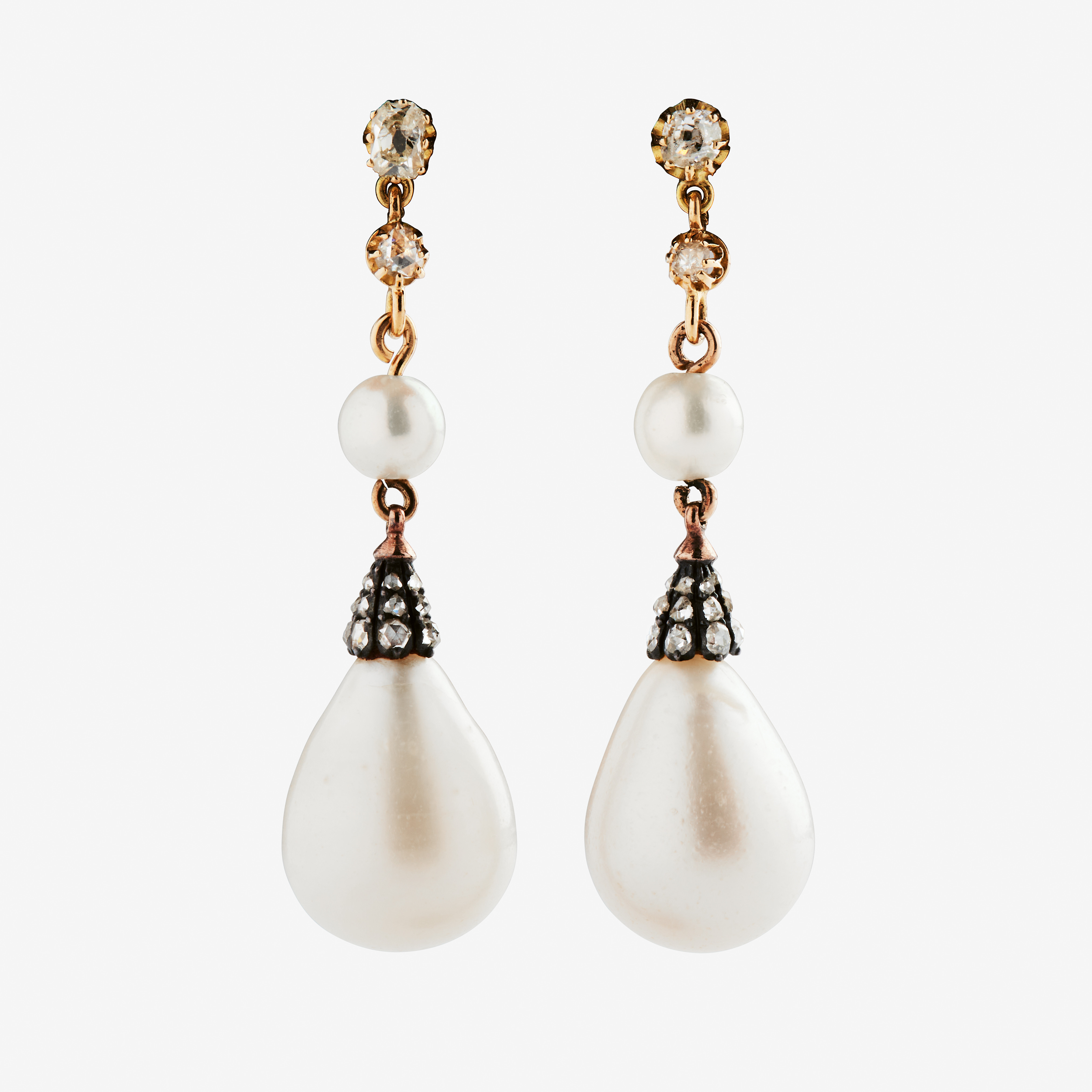 QUEEN JOSEFINA’S EARRINGS, a pair. 18K gold with natural pearls and diamonds, 1810s–1820s.