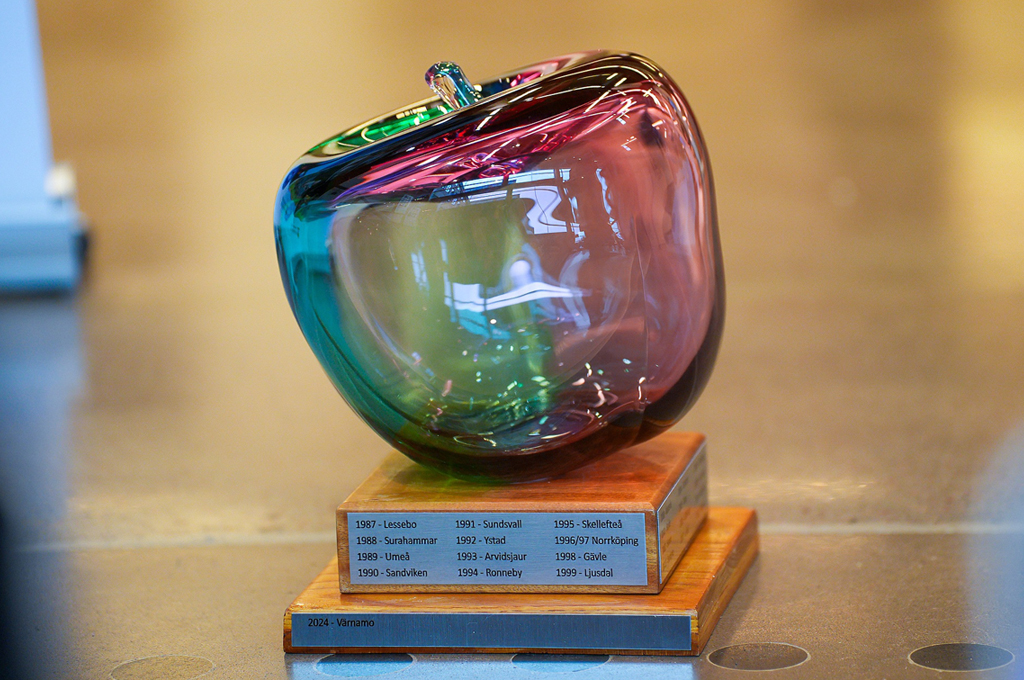 Årets kulturkommun får ett diplom med motiveringen, ett vandringspris i form av ett vackert glasäpple av konstnären Rune Strand samt ett konstverk som kommunen får behålla.