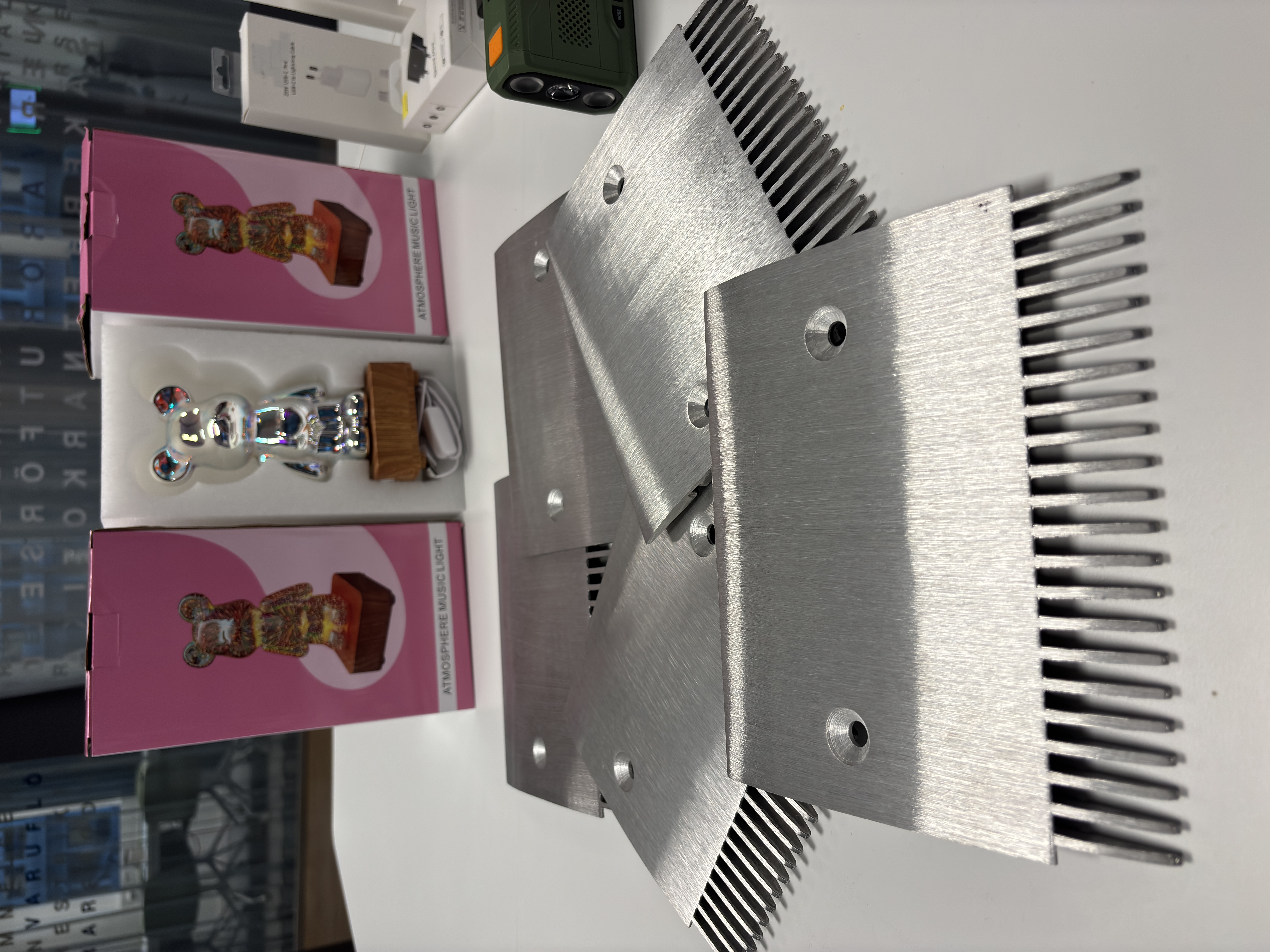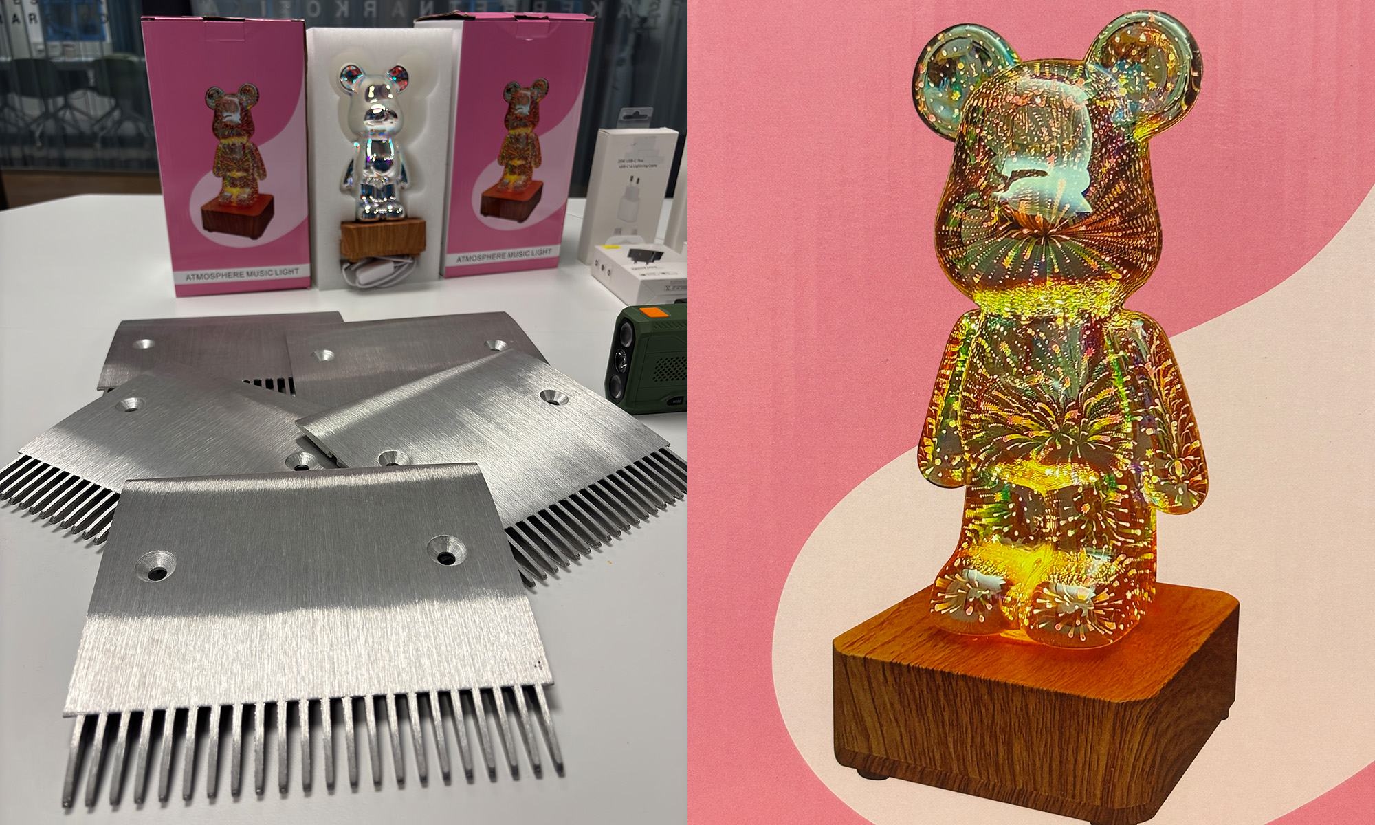 Kopierade delar till rulltrappor och farliga barnlampor är bara några av de farliga föremål som Tullverket stoppat under 2025. Foto: Tullverket
