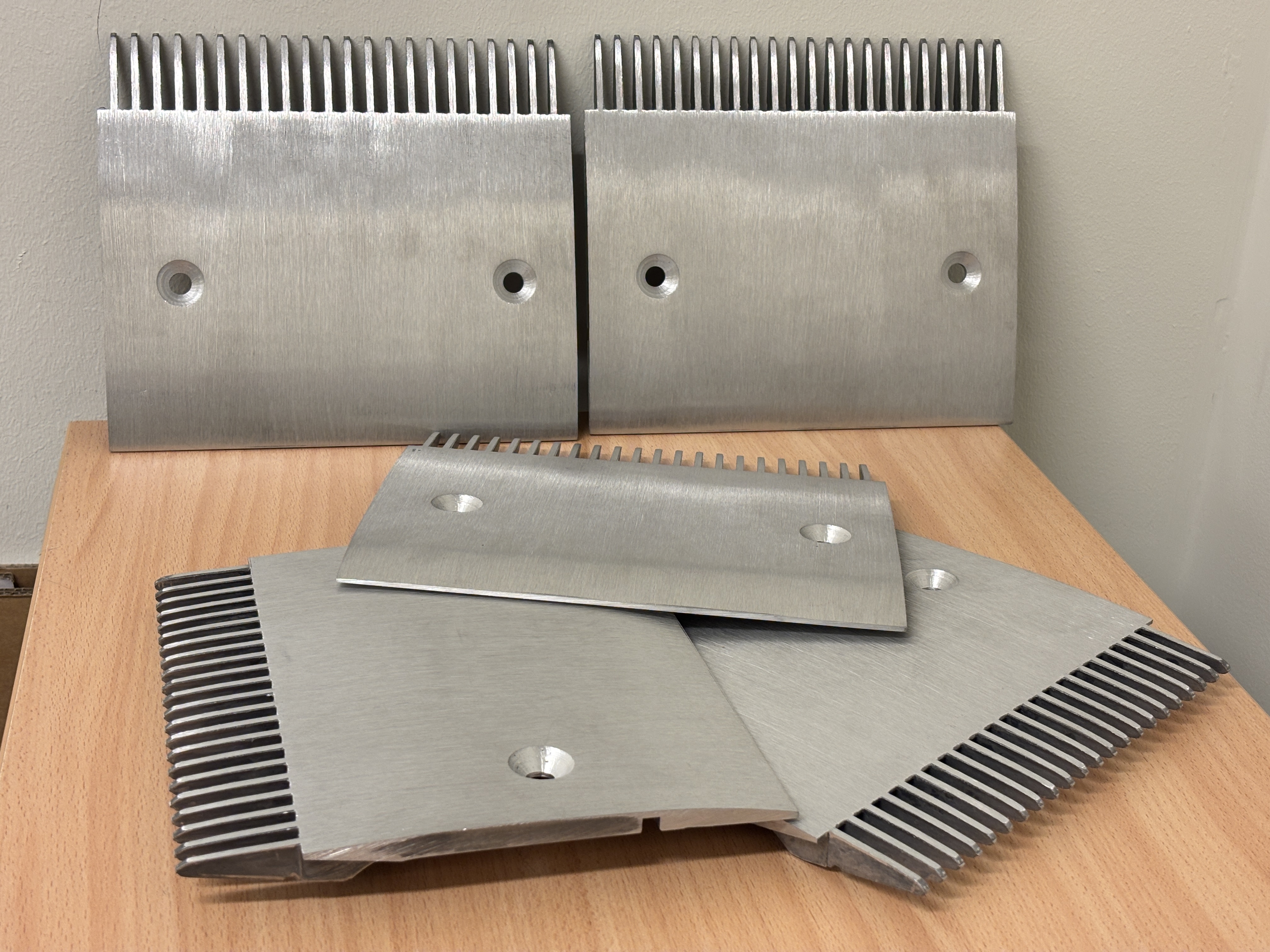 Fem av de 20 falska rulltrappsdelar som Tullverket stoppade i början av året.