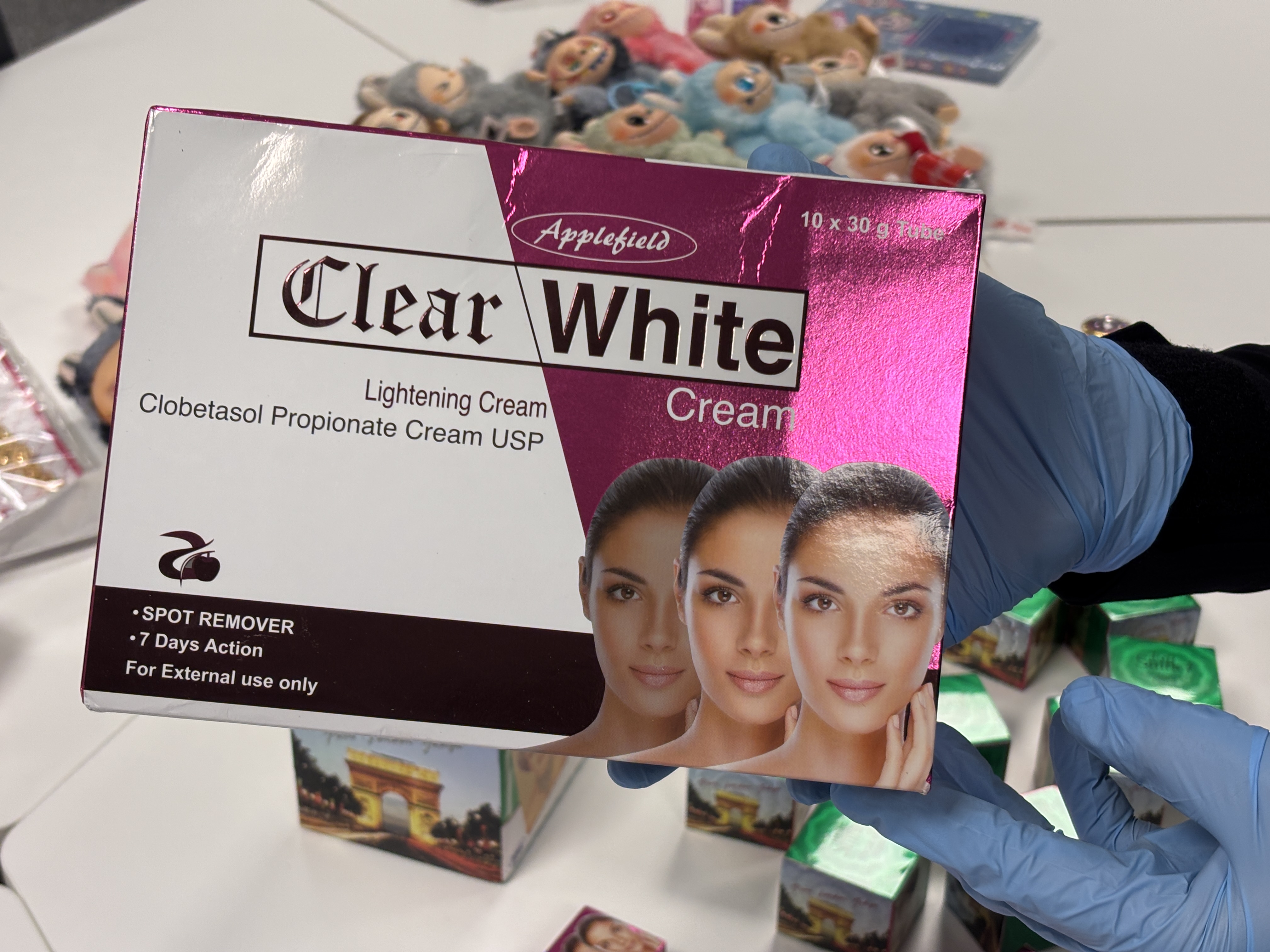 Hudblekningskrämer som är totalförbjudna inom EU.