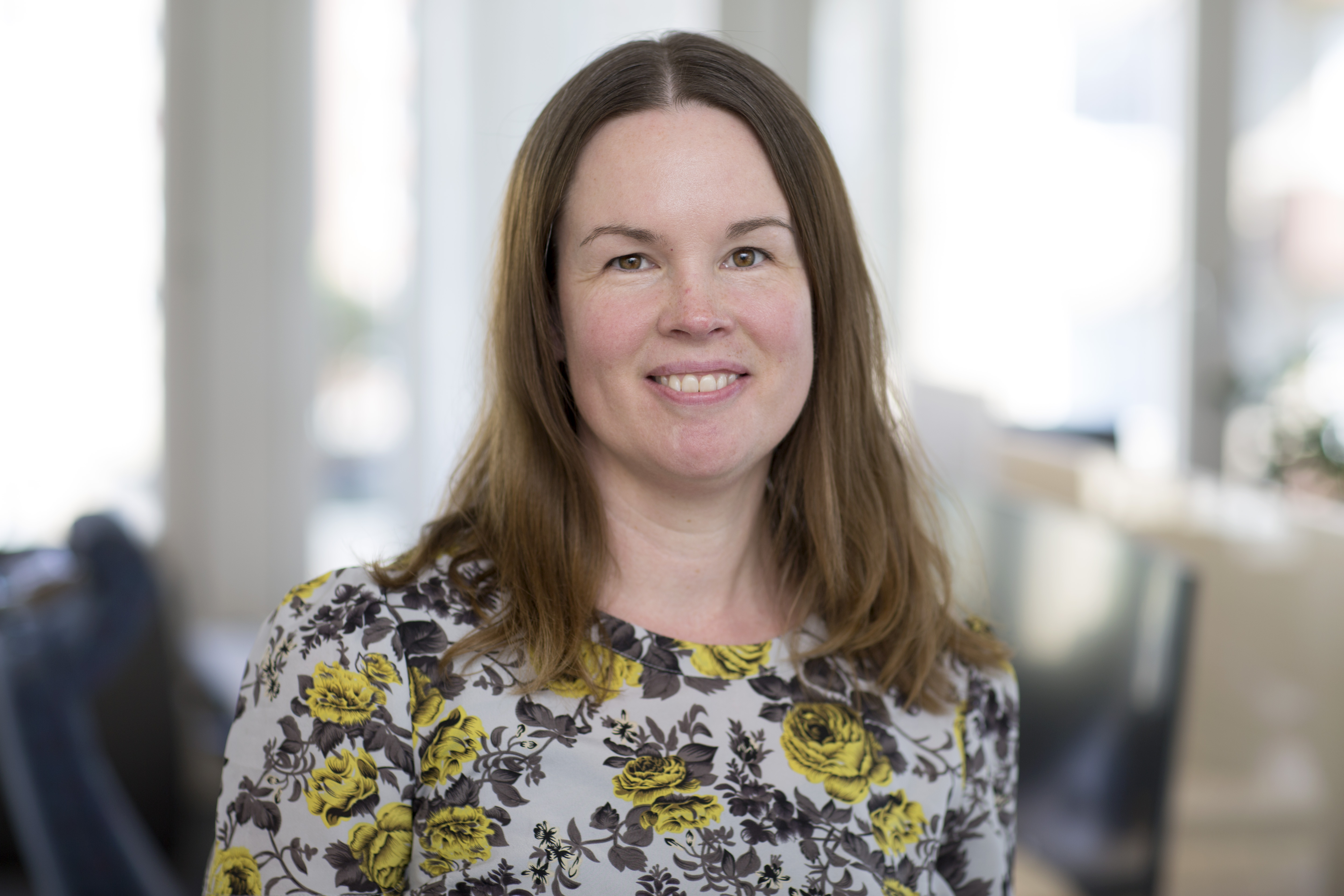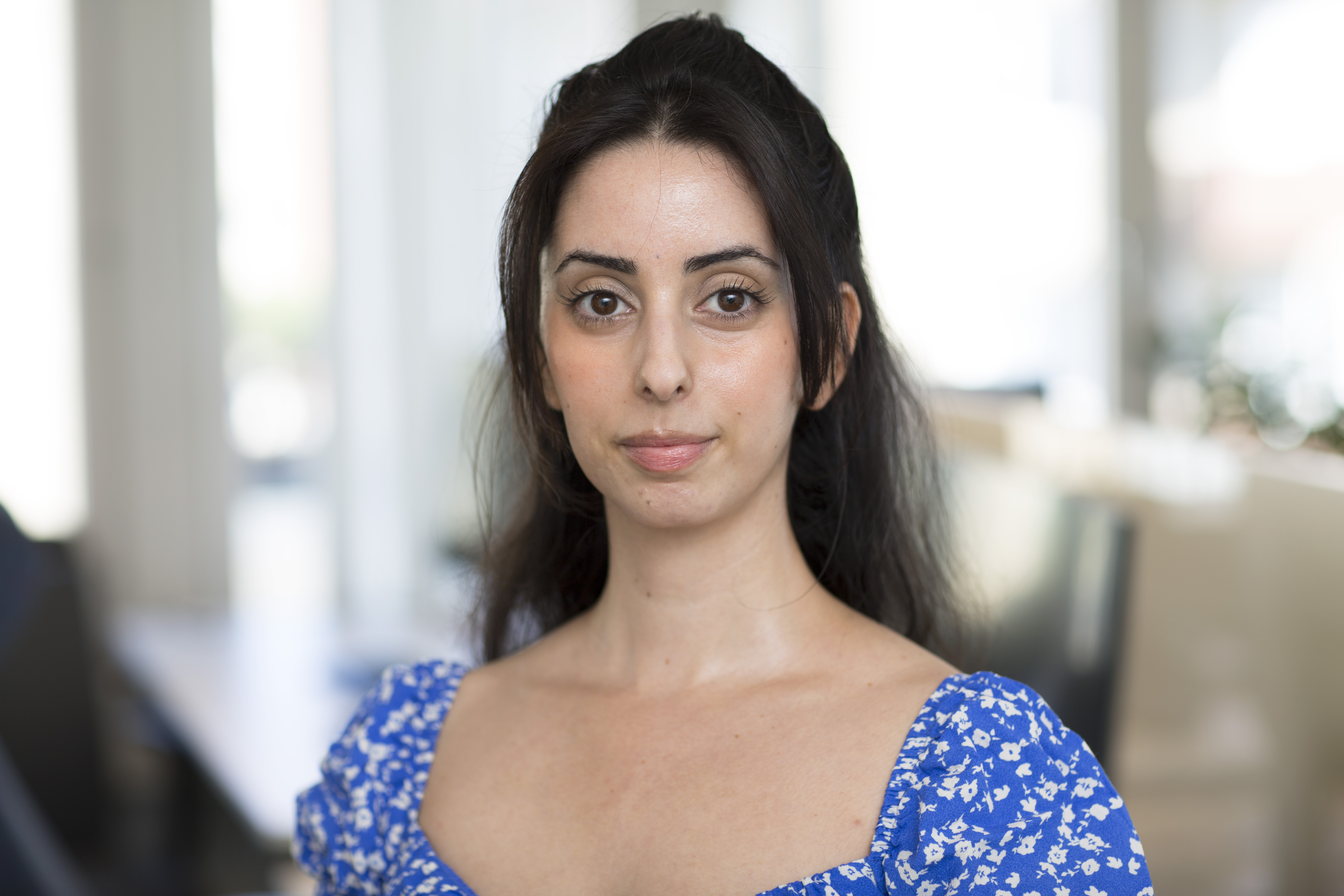 Porträttbild av mörkhårig kvinna