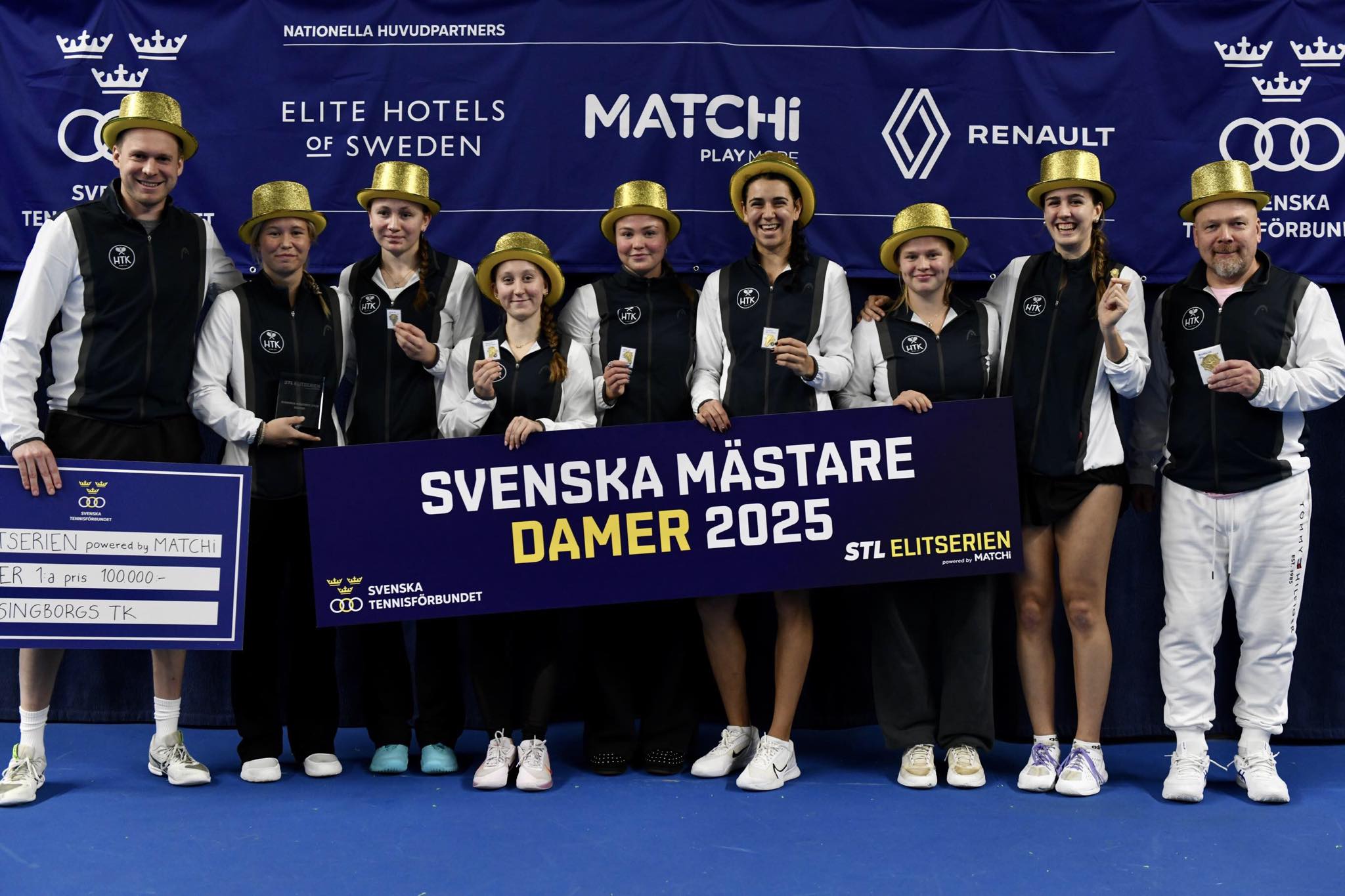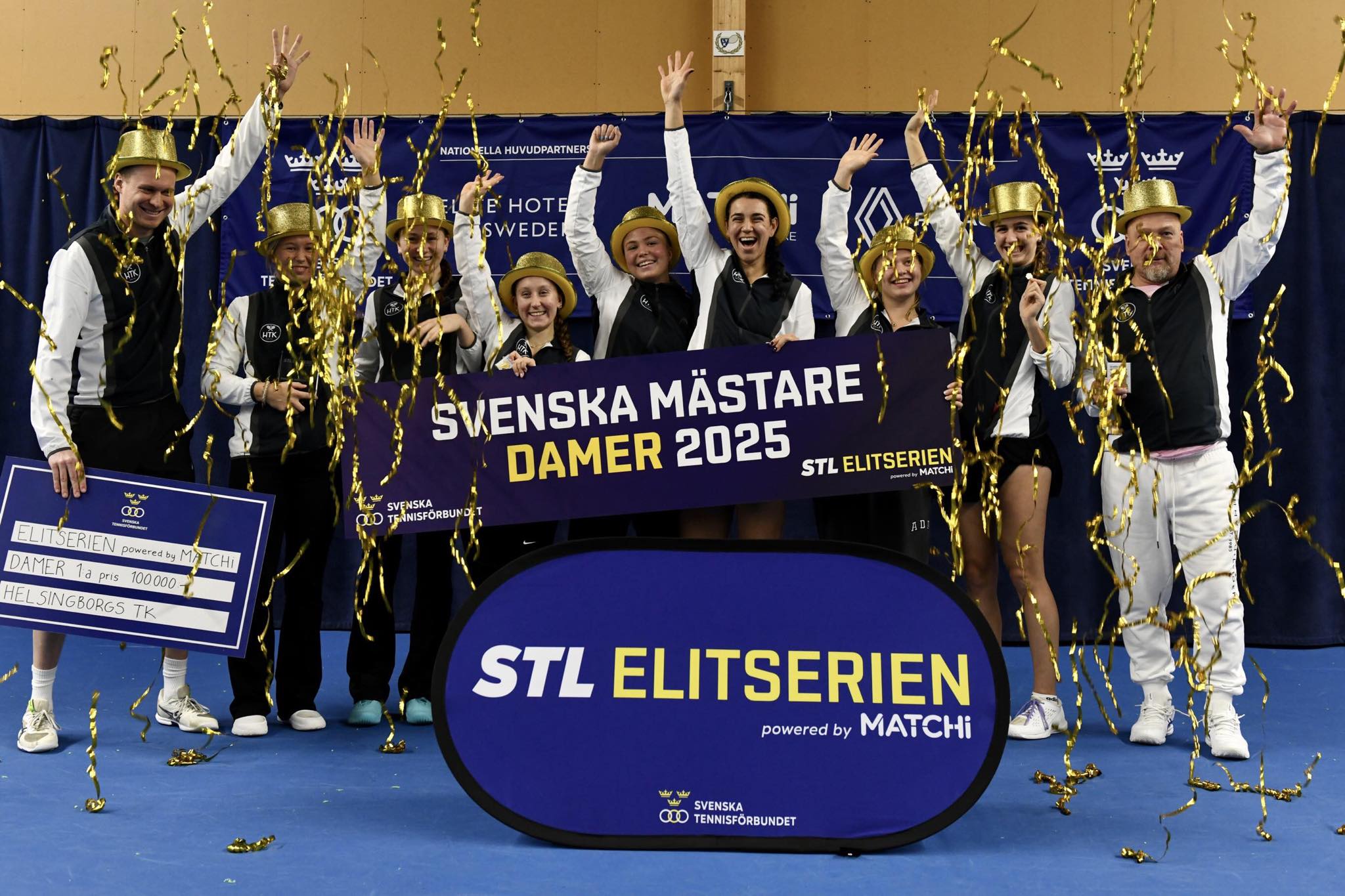 Helsingborgs TK:s damer vann på söndagen klubbens åttonde elitserieguld när slutspelet avgjordes i Lidingö Tennishall. I finalen besegrade skåningarna KLTK med 3-1 i matcher. Därmed blev det vinst i samtliga matcher för Helsingborgs TK i gruppspel och slutspel.