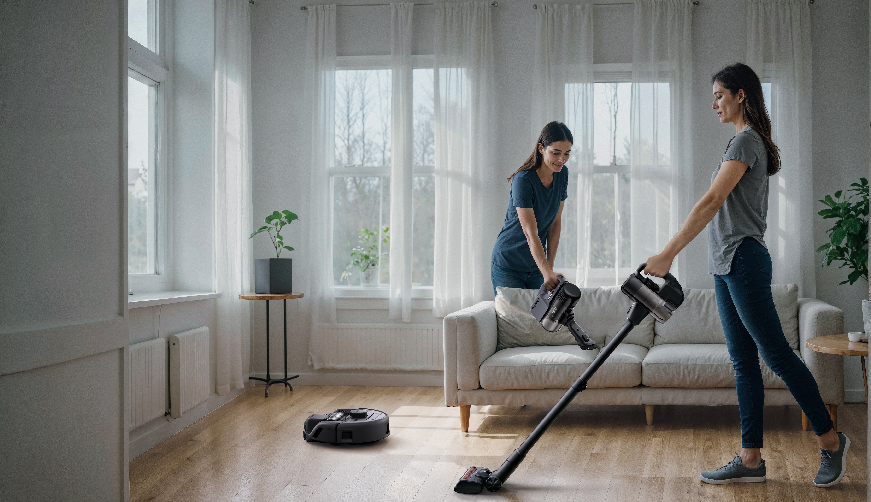 Huvudnumret för eufy E20 3-i-1 är konceptet FlexiONE™ 3-in-1, som kombinerar tre dammsugare i en. Detta innebär att modellen består av en löstagbar dammsugarmodul som innehåller fläktmotorn, ett filtreringssystem i fem steg och dammbehållare. Tack vare de medföljande tillbehören kan modulen smidigt omvandlas från robot- till en handhållen eller en skaftdammsugare, vilket täcker hemmets alla dammsugningsbehov – från golv till tak.