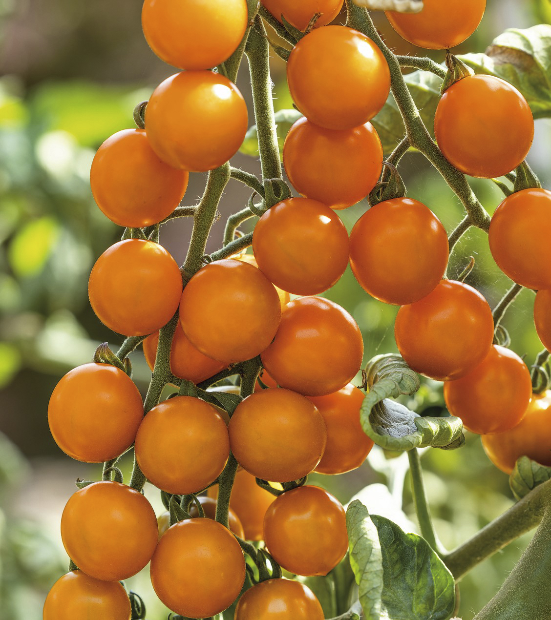 En tidig, frisk körsbärstomat med orangegula frukter på mycket långa klasar. Fast tomat med söt, god smak som inte spricker vid mognad på plantan.
