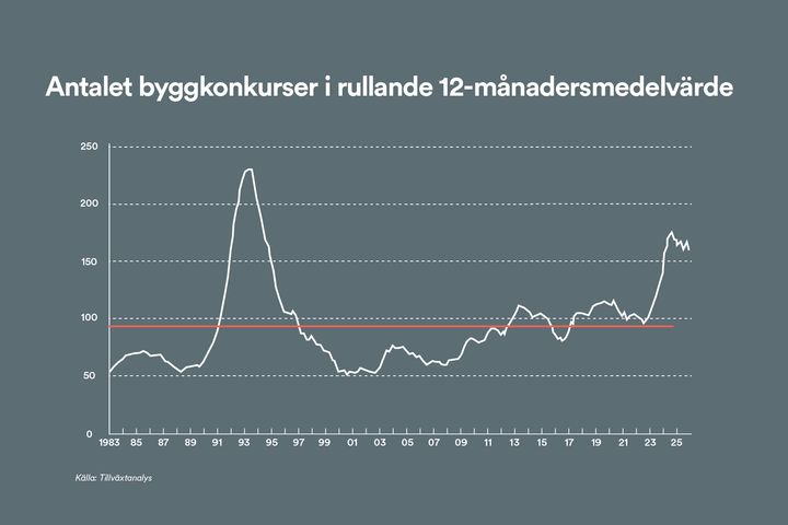 Totalt gick 1 933 byggföretag i konkurs under 2025. Det är fortsatt småföretagen som är mest ekonomiskt pressade. Nio av tio av byggföretag som gick omkull hade färre än tio anställda.