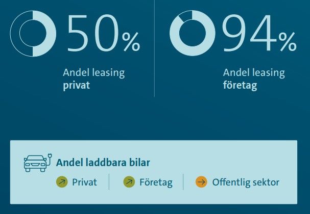 Även företagen är på sin högsta andel laddbarat och står för 90 procent av de företagsleasade nya personbilarna.