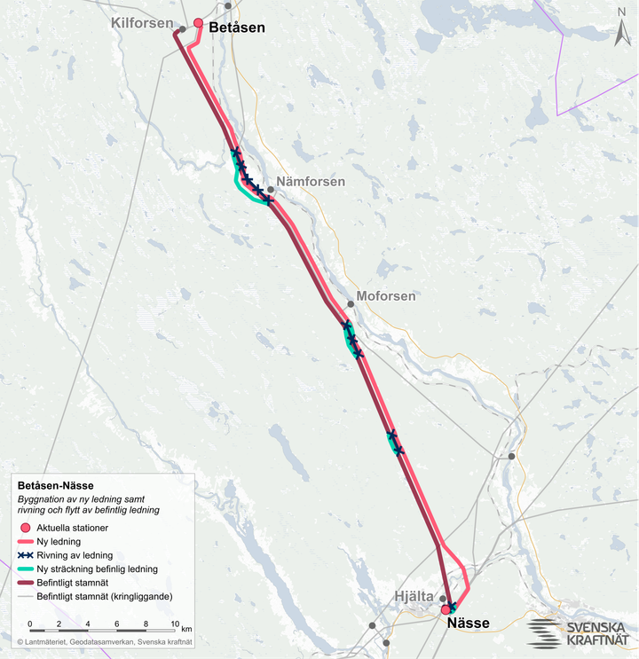 Den nya ledningen mellan Betåsen och Nässe byggs parallellt med den 400 kV-ledning som redan finns på sträckan idag. Fyra delsträckor av den befintliga ledningen kommer att flyttas under projektets gång, för att möjliggöra framkomlighet för den nya ledningen med hänsyn till bebyggelse, samt natur- och kulturmiljö.