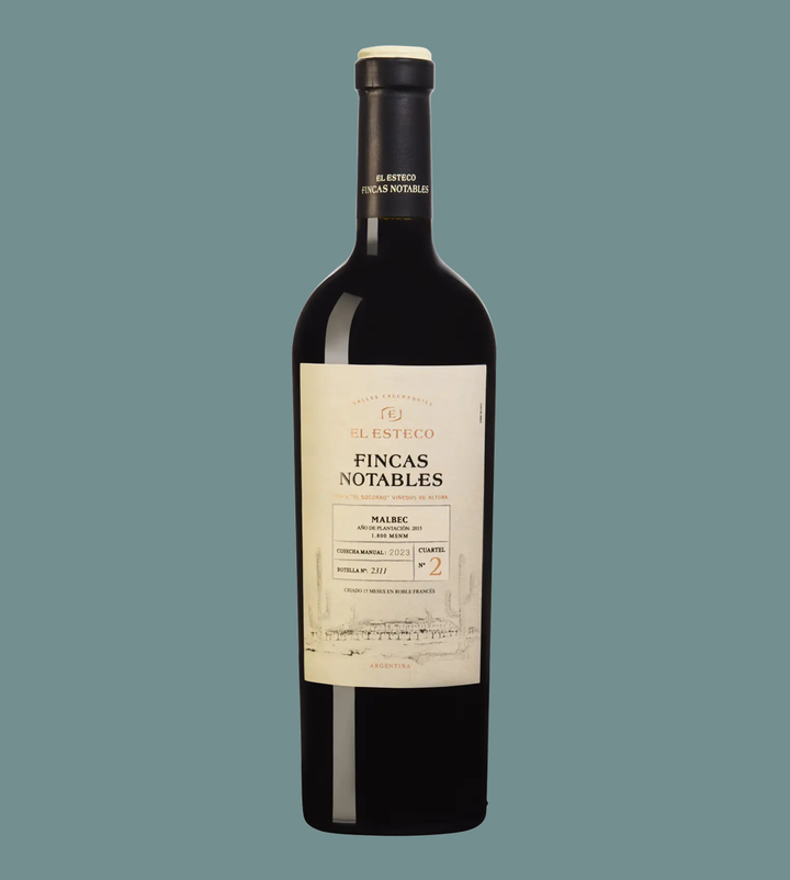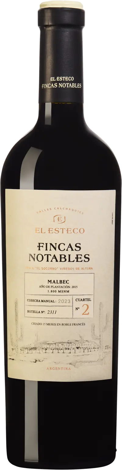 Finca Notables betyder ”anmärkningsvärd vingård” och är en vinserie från ansedda El Esteco och druvor från noggrant utvalda delar av enskilda vingårdar. Druvorna till El Esteco Finca Notables Malbec 2023 kommer från Plot nr 2 av El Socorro, en vingård med sandig jordmån i Calchaqui Valley, som är Argentinas nordligaste vindistrikt vid Andernas sluttningar.