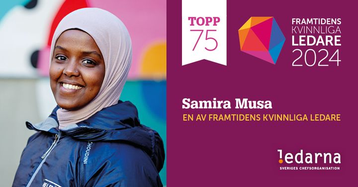 Hej främlings Samira Musa har utsetts till en av framtidens kvinnliga ledare i Sverige. Den 16 maj presenterar Ledarna – Sveriges chefsorganisation hela listan och utser då även årets vinnare under en webbsändning. Så håll tummarna med oss då! – Vilket år! Först nominerades jag till Årets Taus och sedan, efter åtta år i Sverige, godkände Migrationsverket till sist min ansökan om svenskt medborgarskap. […] Och stolt och glad är jag även över att uppmärksammas som Framtidens kvinnliga ledare 2024. Jag skäms inte för att sträcka på mig i det här sammanhanget- dels för min egen skull, men också för att vi behöver se mer av svarta kvinnliga ledare i rampljuset, säger Samira, biträdande verksamhetschef och nationell koordinator. Om Framtidens kvinnliga ledare: Varje år sätter chefsorganisationen Ledarna ihop en lista som består av 75 chefer som är unga och kvinnor. Gemensamt för dessa kvinnor är att de gör skillnad och visar på värdet av ett bra ledarskap. Syftet med utmärkelsen Framtidens kvinnliga ledare är att: