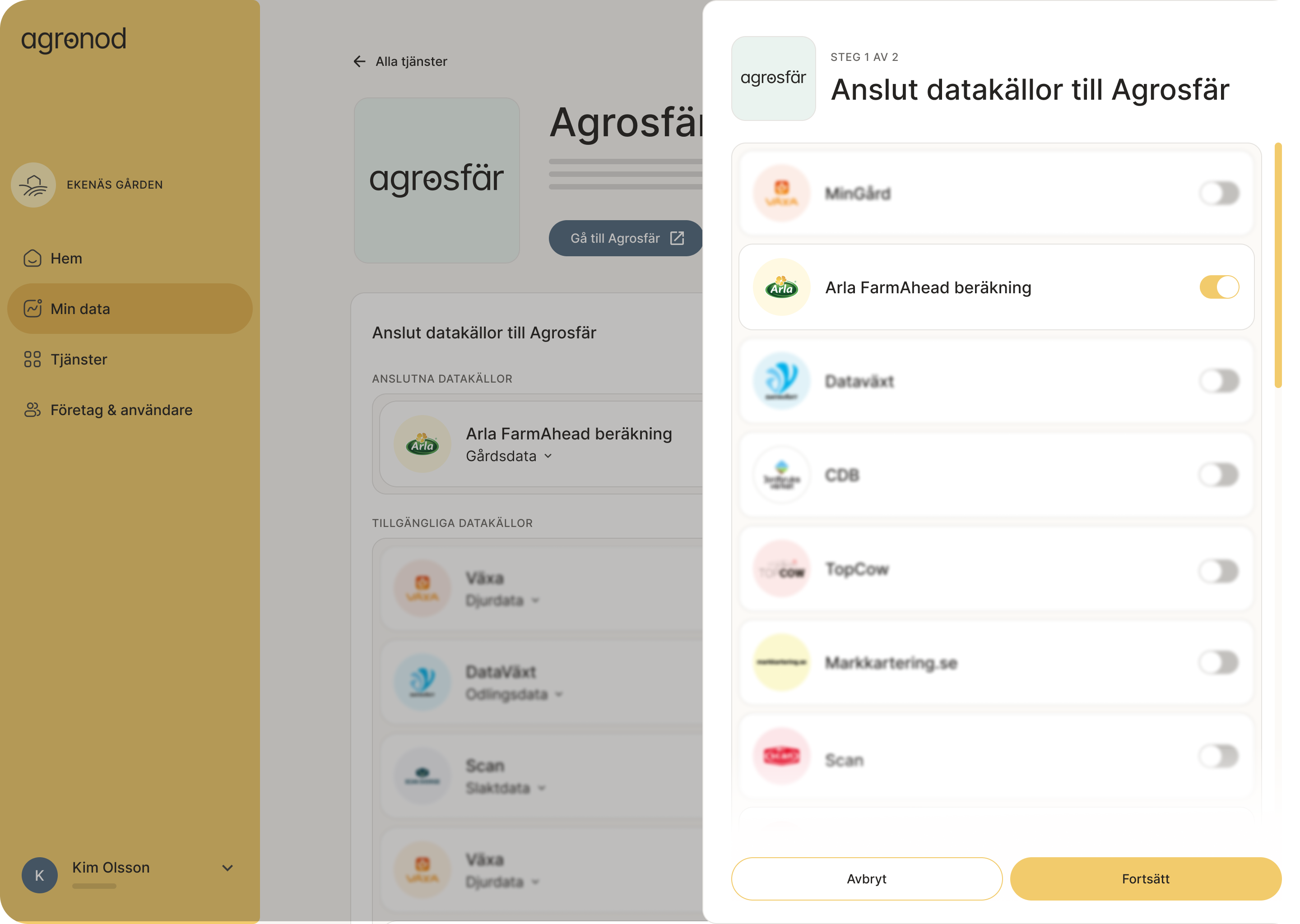 Agrosfär, utvecklat av Agronod, är redan kopplat till flera aktörer som många Arlamedlemmar interagerar med, bland annat Scan, KRAV och Swedbank.