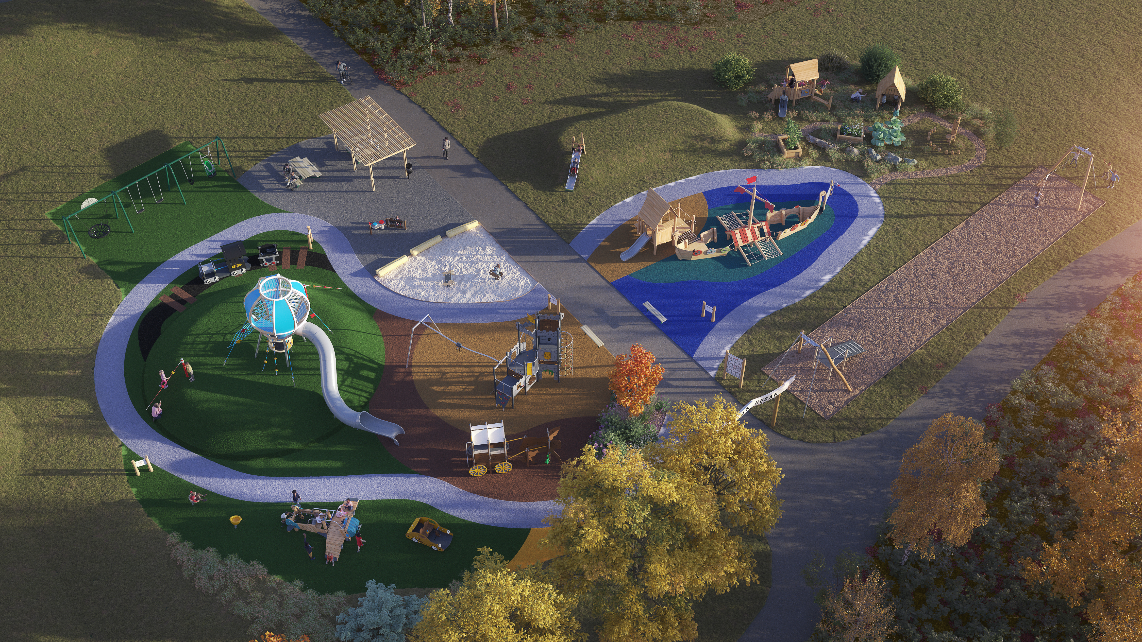 Nu är det klart att den nya lekplatsen, som kommunstyrelsen beslutade om våren 2025, blir en lekfull tidsresa på temat Väsbys historia och samtid. Visionsbilderna visar en färggrann temalekplats med olika färdmedel i form av vikingaskepp, flygplan och bil. Till synes svävande i mitten av lekplatsen finns en stor luftballong som för tankarna till klassiska upptäcktsfärder.