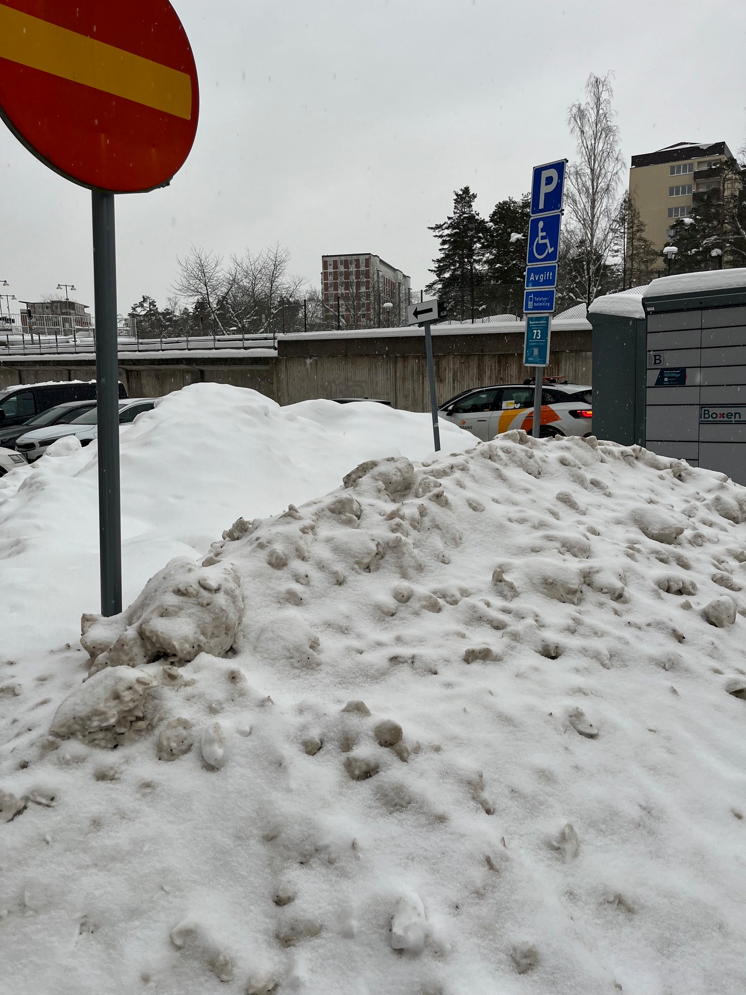 Snöhög på parkeringsplats för person med nedsatt rörelseförmåga