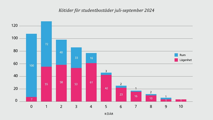 Precis som vanligt har trycket på studentbostäder i år varit högre runt höstens terminsstart än under resten av året. Trots att antalet nyantagna studenter har ökat inför höstterminen 2024, med totalt 2 429 fler än förra året, har kötiderna överraskande nog minskat. Särskilt för en specifik boendetyp.