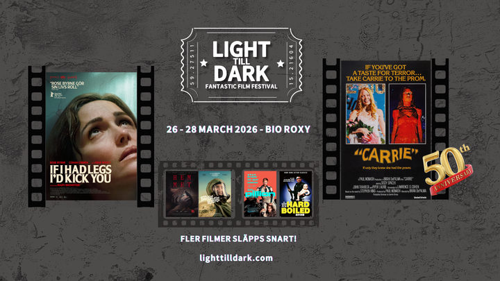 Light Till Dark Fantastic Film Festival intar Bio Roxy i Örebro den 26–28 mars. I vanlig ordning visas det genrefilm, kultklassiker och underground filmer på stor duk. I år visas förutom If I Had Legs I’d Kick You (2025), Svenska skräckfilmen Hemmet (2025) baserad på Mats Strandbergs roman. Egghead Republic (2025), svensk sci-fi i regi av Pella Kågerman och Hugo Lilja. Pillion (2025), omtalad mörk romcom med Alexander Skarsgård och Harry Melling (Dudley från Harry Potter) i huvudrollerna. Samt klassisk Hong Kong action av John Woo med Hard Boiled (1992).