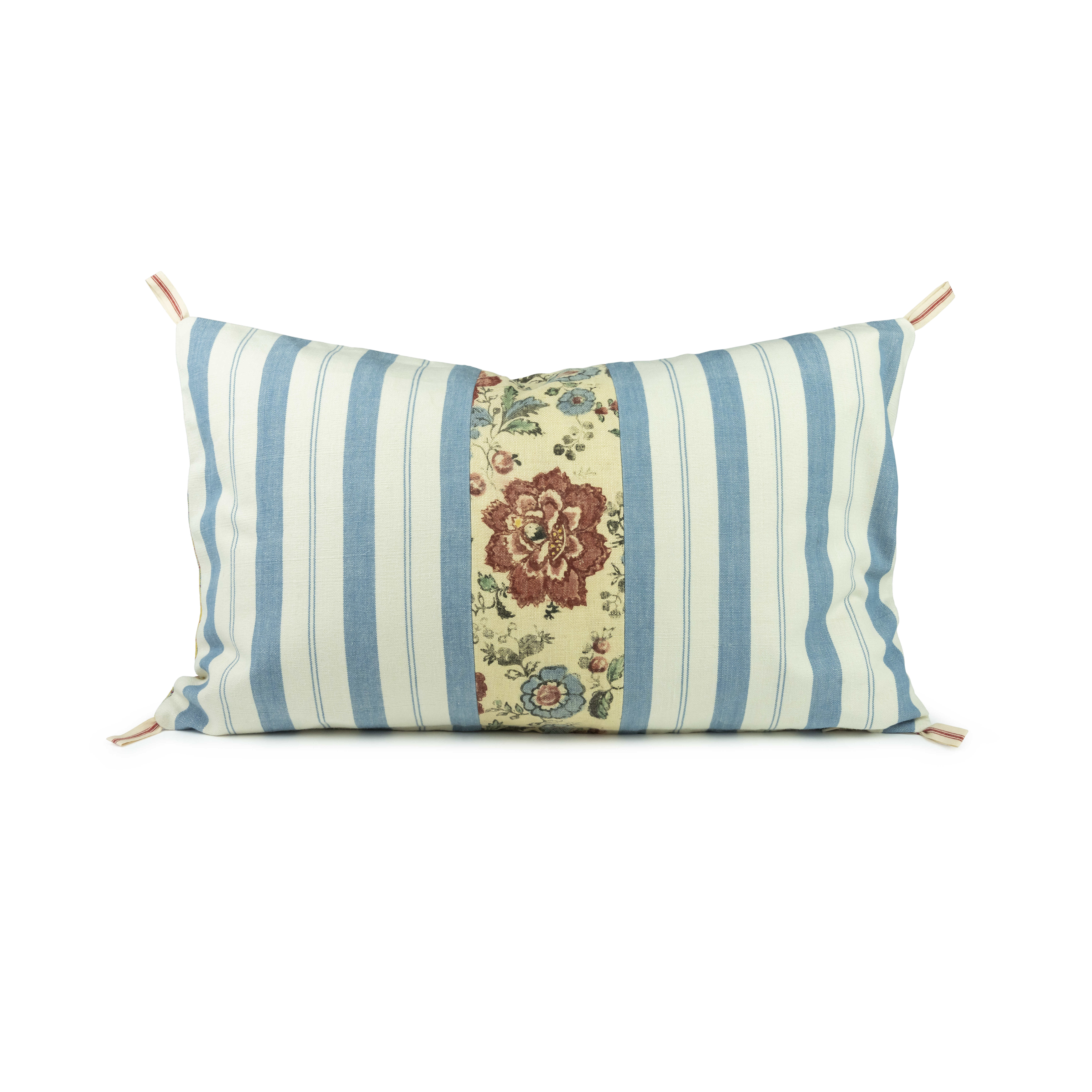 The spring release presents a rich variation of patterns, textures and textile techniques. Large stylised 18th-century roses meet smaller floral and foliate motifs derived from 19th-century printed cotton fabrics. Restrained stripes are paired with stylised botanical elements in patchwork compositions. Each cushion cover features different front and back panels, further emphasising the handcrafted character.