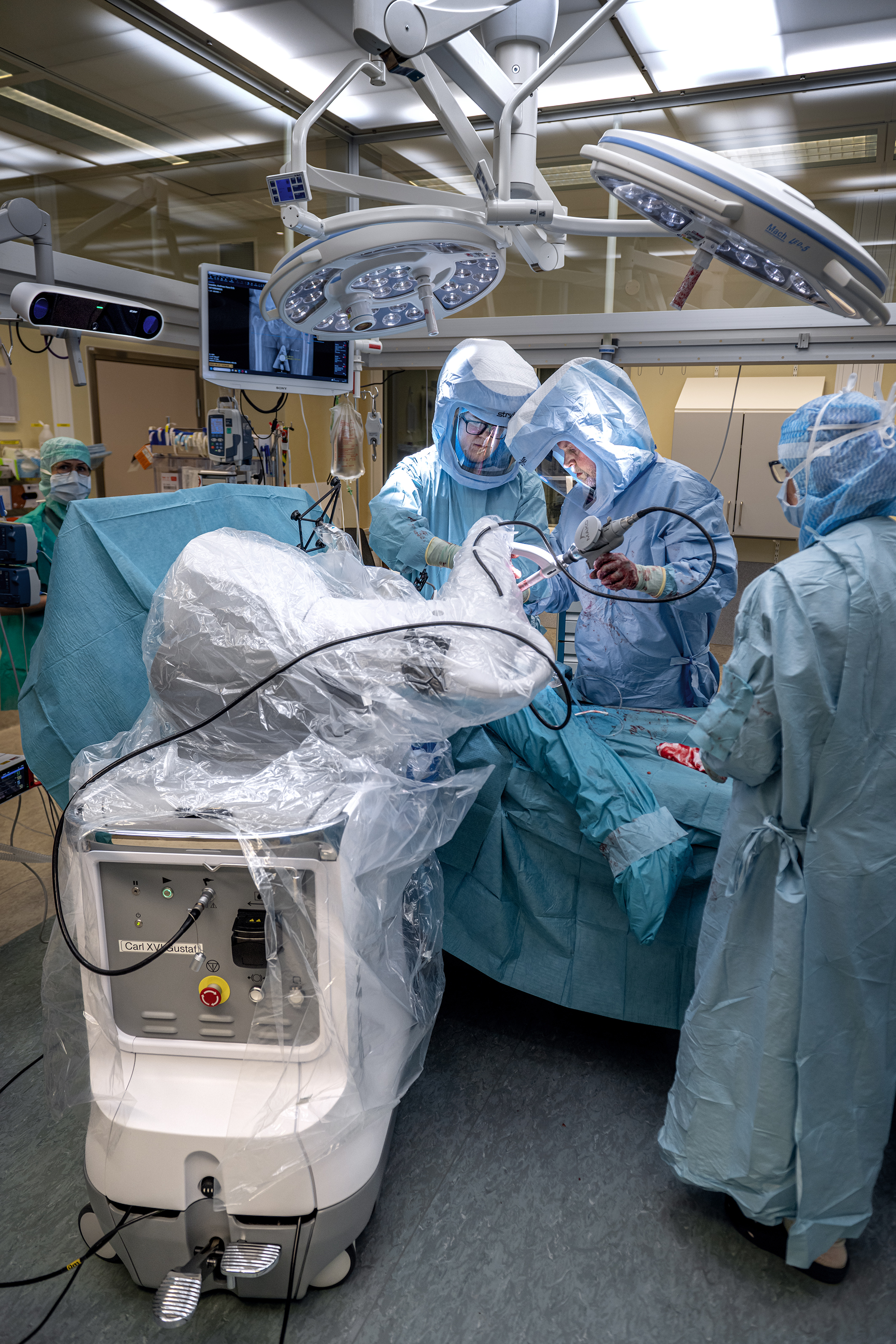 Gunnar Falk, överläkare och sektionschef vid ortopediska protessektionen, och Per Wretenberg, överläkare och professor i ortopedi, genomförde de första operationerna med roboten i början av februari tillsammans med överläkaren Peter Wildeman.