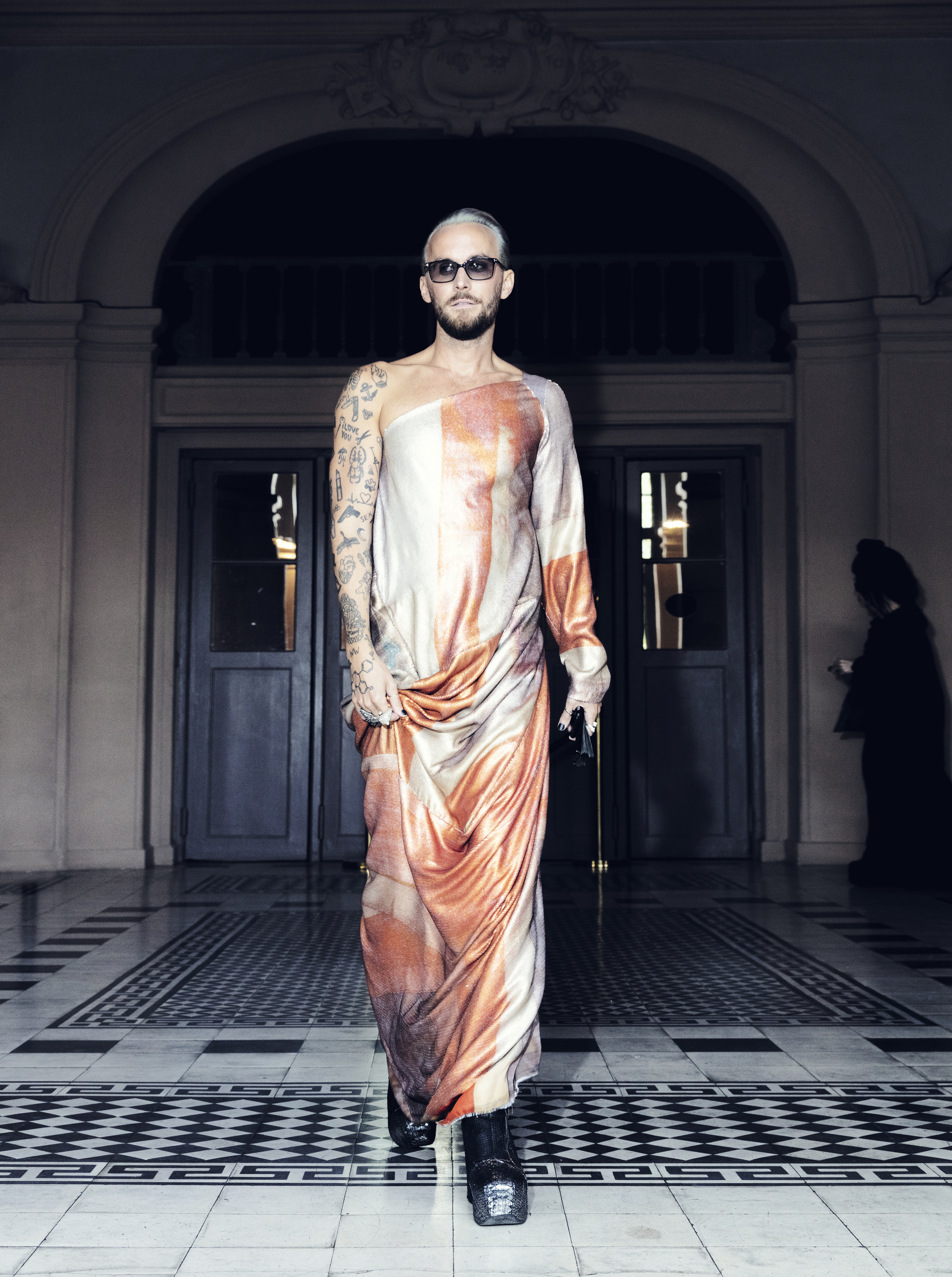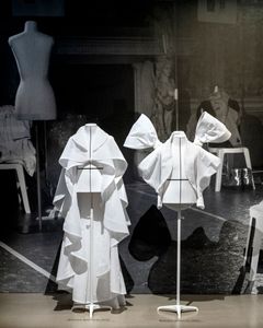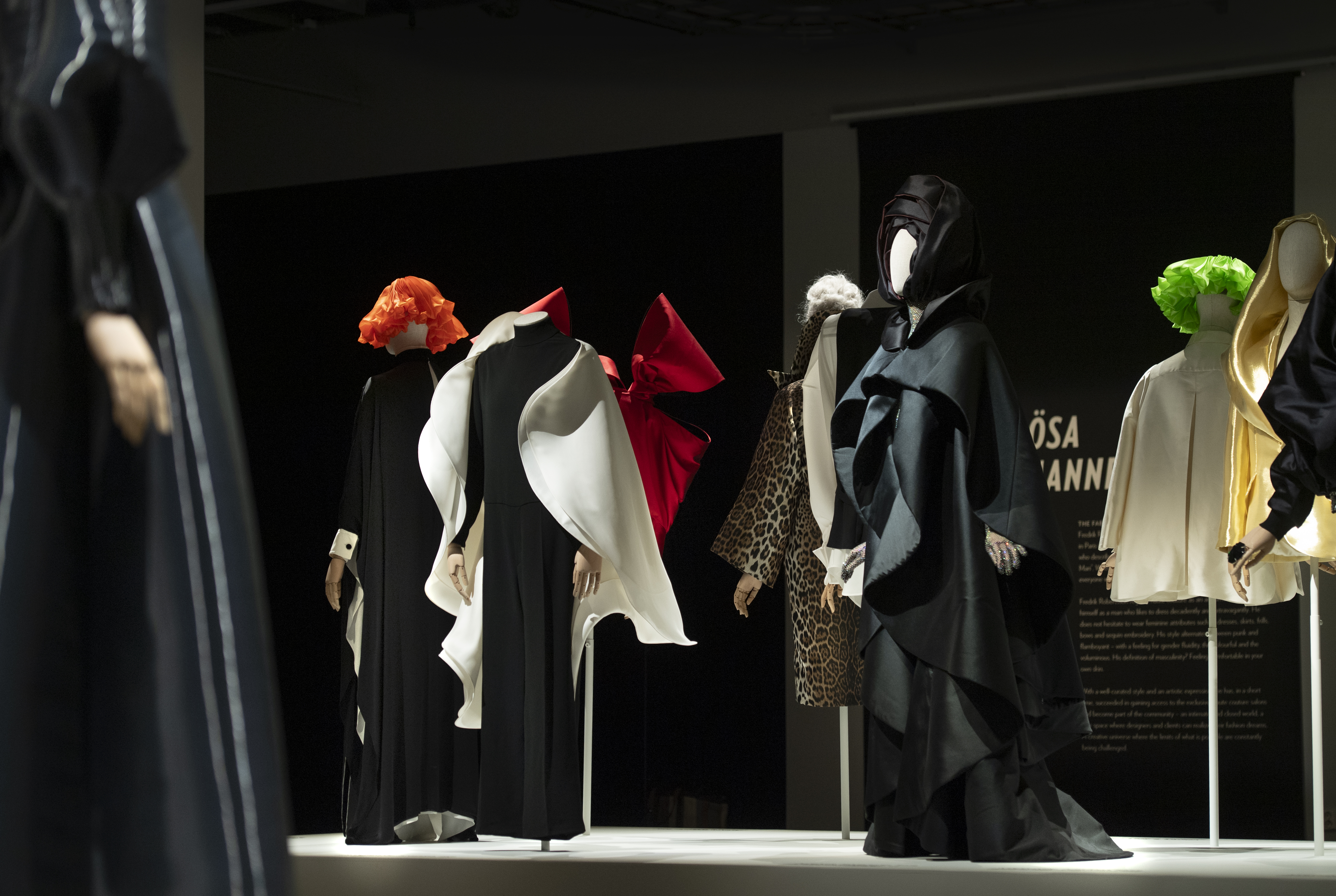Klänningen gör mannen, haute couture – en ny era är curerad av Susanna Strömquist i samarbete med Fredrik Robertsson och har tidigare visats på Liljevalchs+ . Utställningsdesign Robin Grann.