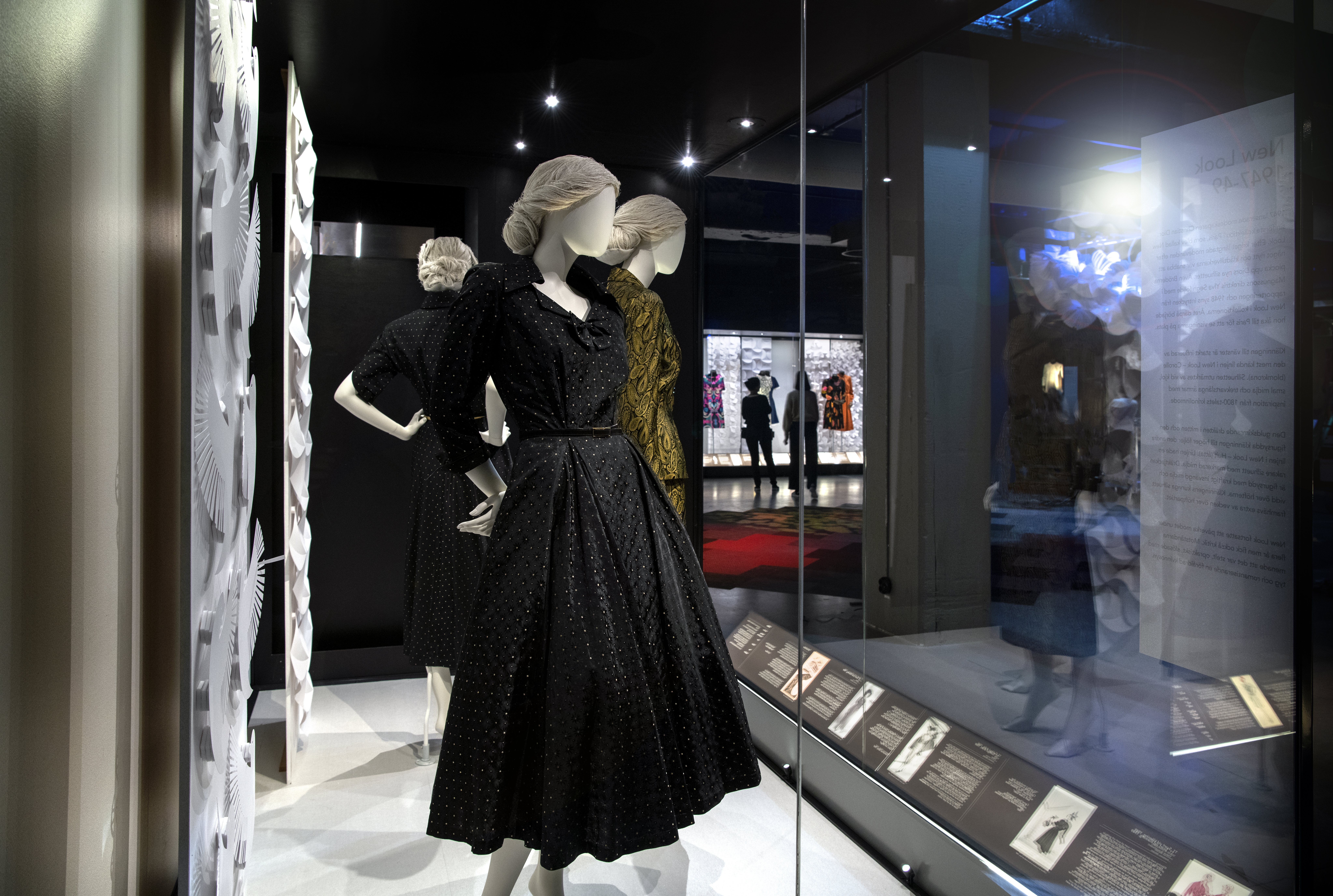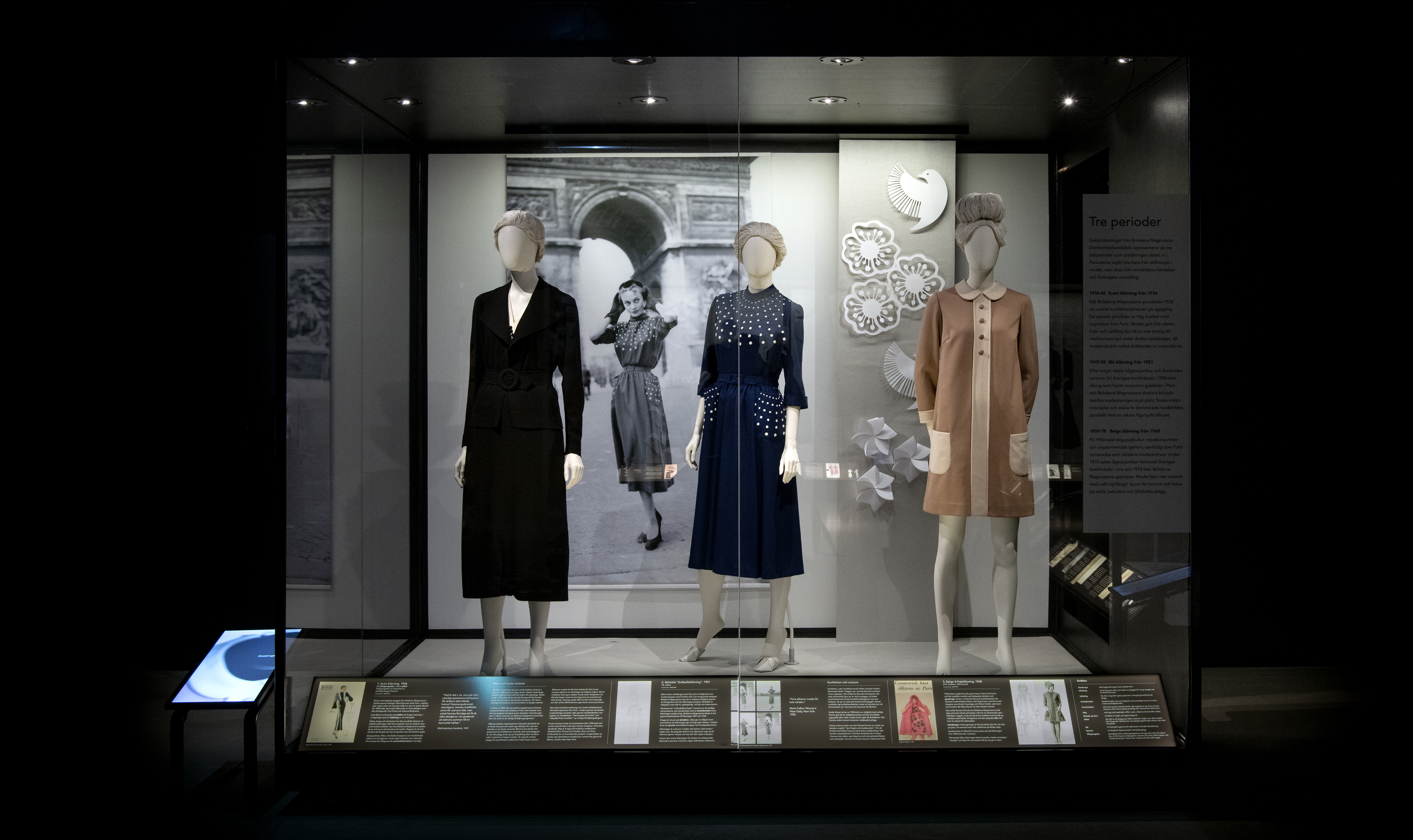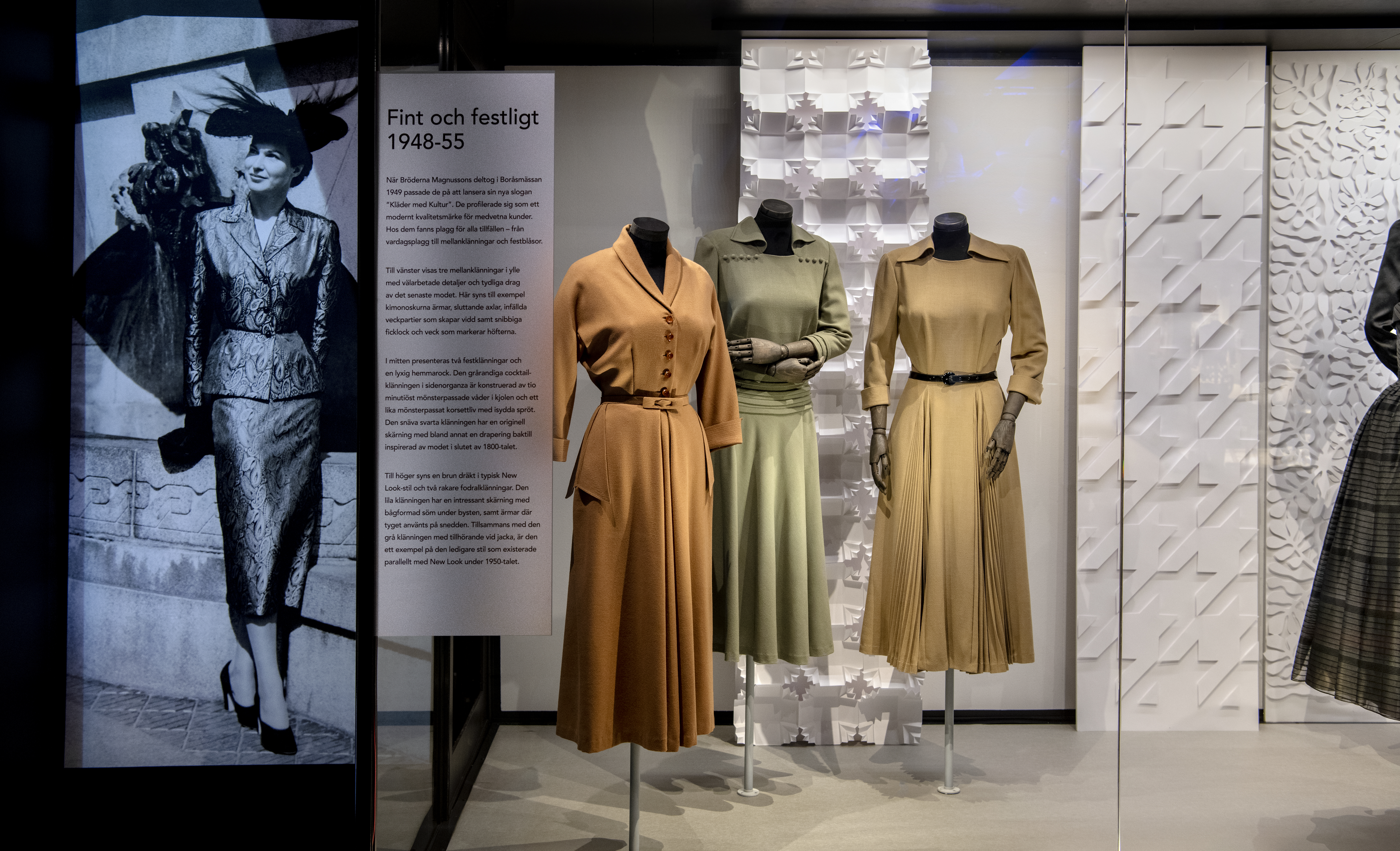 I Textilmuseets omfattande samling från Bröderna Magnussons finns förutom kläder även skisser, modefoton, tidningsklipp och personliga berättelser. I utställningen visas ett urval på ett 40-tal plagg samt annat material från perioden 1936 till 1978. Utställningen speglar modehistorien i förhållande till det omgivande samhället, utvecklingen av textila material, produktion och konsumtion, normer och ideal.