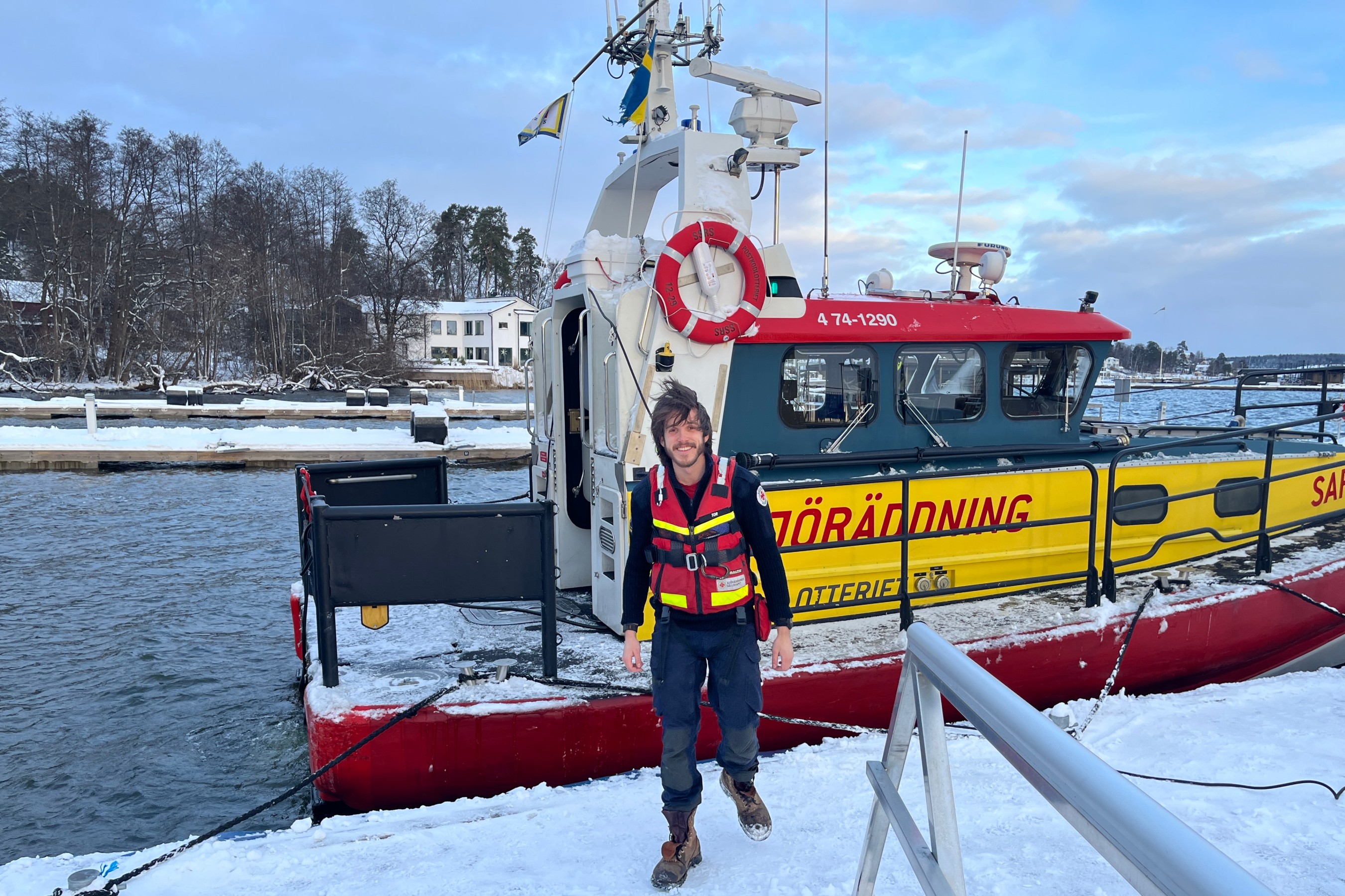 – Alla vi som är sjöräddare arbetar ideellt. Belöningen ligger i att vi få vara med att rädda liv, säger Tor Walfridsson som är en av befälhavarna här på stationen. Han varvar uppdraget som frivillig sjöräddare med studier på sjuksköterskeprogrammet vid Sophiahemmet Högskola.