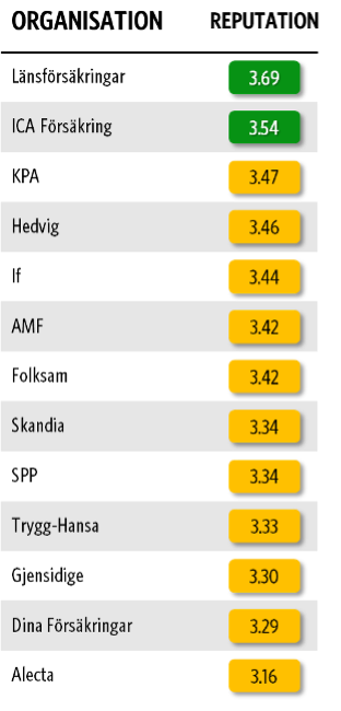 Anseendebetyg för försäkringsbolagen i Sverige