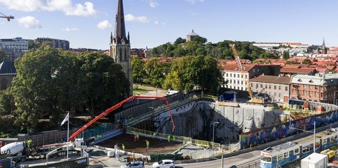 På den här pressträffen fokuserar vi på våra bergarbeten under Haga kyrkoplan. Vi gör en djupdykning i pågående och planerade arbeten; med målet att bygga den del av stationutrymmet som ligger i berg. Och det är ett imponerande bergrum vi ska bygga! Under berget sträcker sig de 250 meter långa plattformarna i ett bergrum som är 50 meter brett och med en höjd på 12-17 meter.