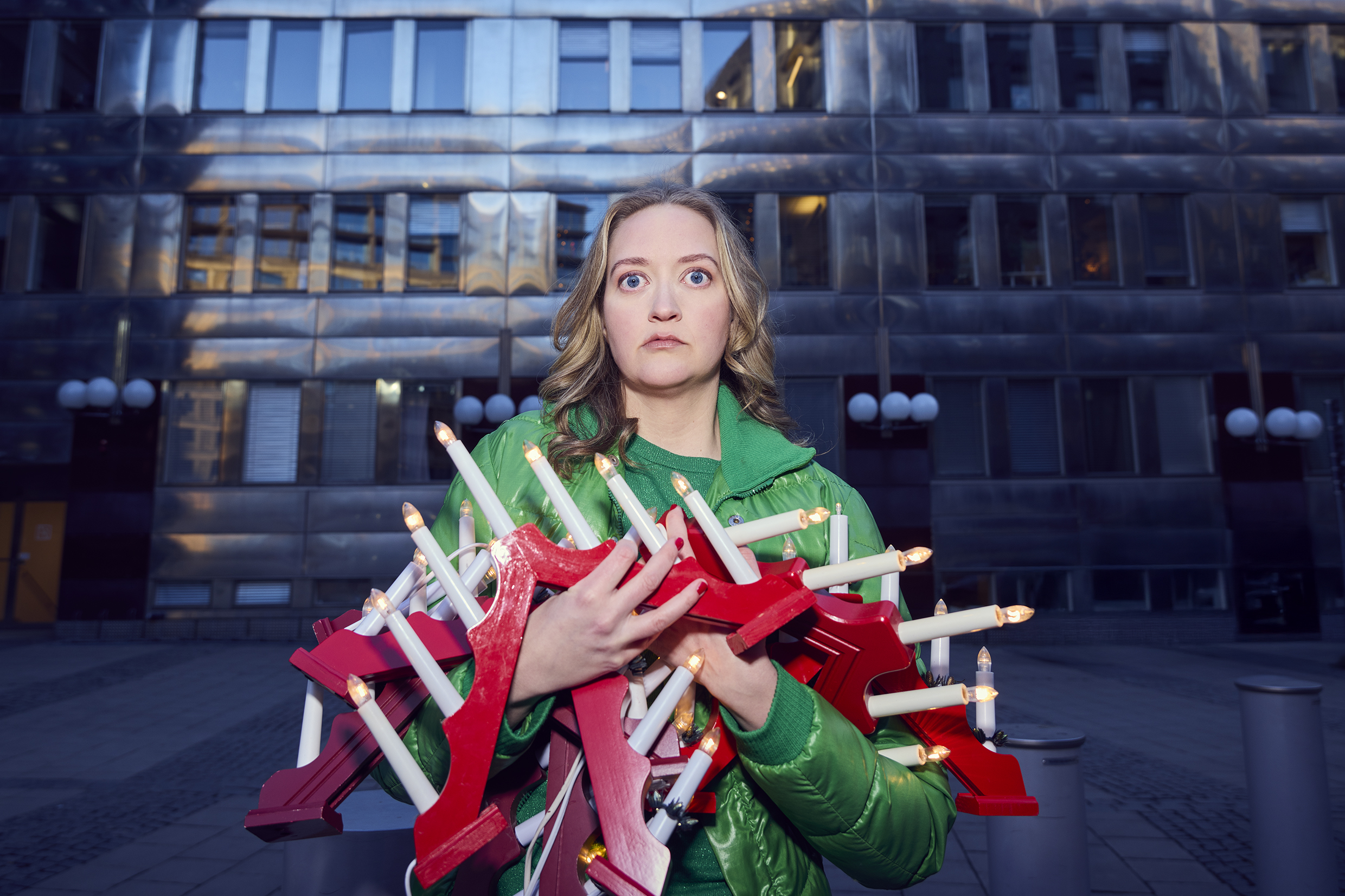 När ledningen bestämmer sig för att skriva "GOD JUL" på fasaden är det med goda föresatser. Projektet ska bli en ljuspunkt i mörka tider och visa handlingskraft utan att kosta något. Snart kantas däremot arbetet av otydliga mejl, motstridiga direktiv, revirtänkande och oro kring nedskärningar.