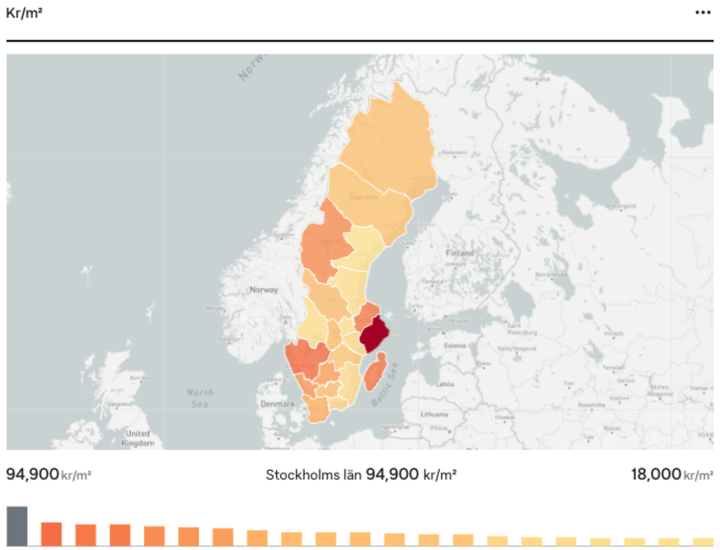 Högst pris i Stockholms län 94 900 kr/kvm