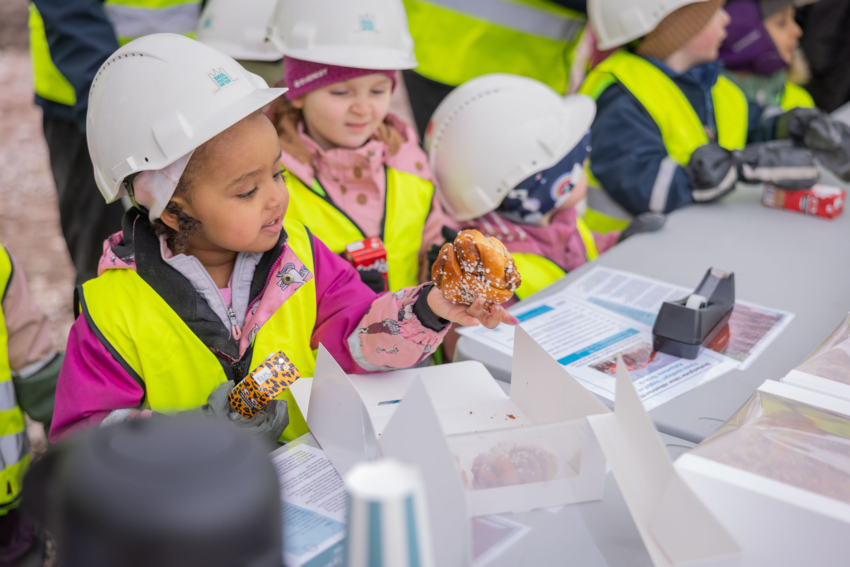 Efter inflyttning i slutet av sommaren har både barn och personal nu börjat finna sig till rätta i den nybyggda, gröna förskolan – som blivit ett välkommet nytillskott i det snabbt framväxande bostadsområdet Industristaden. Måndagen den 10 november klipptes invigningsbandet av förskolebarnen, som fick hjälp med saxarna av gästande kommunpolitiker, innan det bjöds på fika och rundtur.