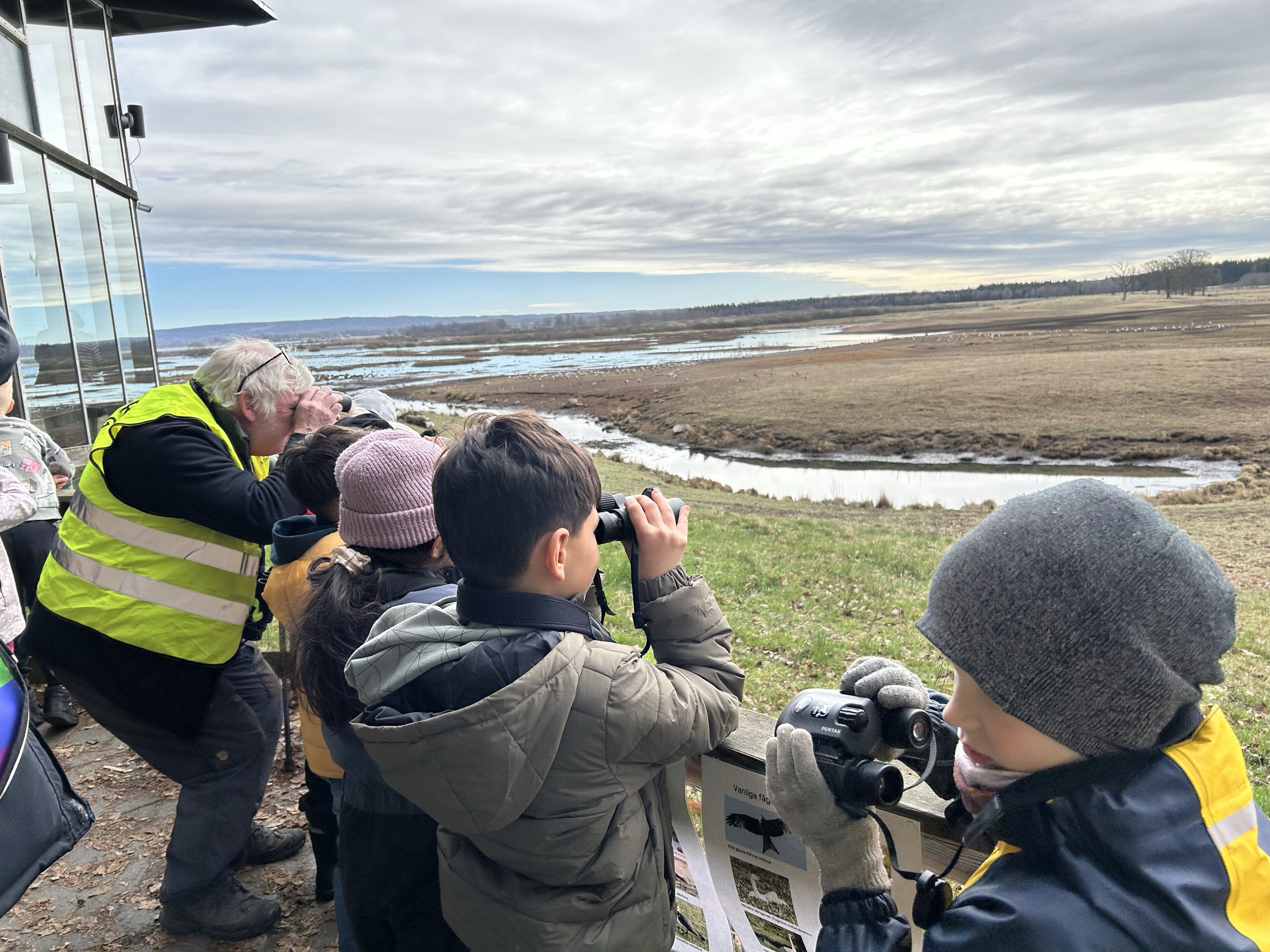 Tranorna strömmar in till Hornborgasjön – och med dem kommer hundratals förväntansfulla barn. Under de naturpedagogiska dagarna vid Trandansen får över 700 elever uppleva tranornas ankomst på nära håll.