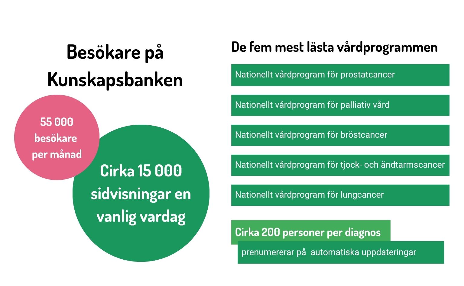 - Kunskapsbanken, där alla regimer, vårdprogram och vårdförlopp finns, har cirka 15 000 sidvisningar om dagen.