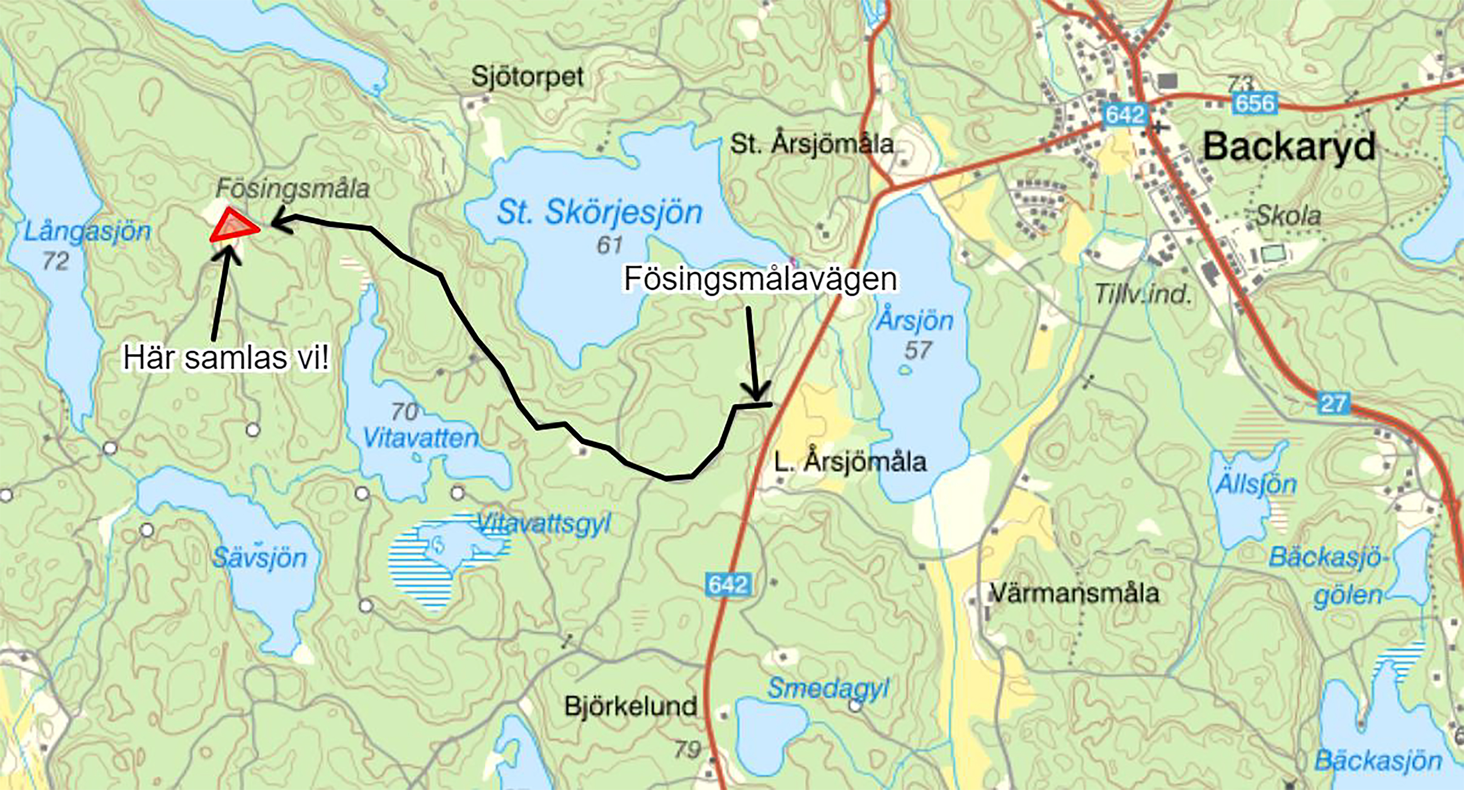 Lördagen den 2 maj klockan 09.00–12.00. Sväng av från riksväg 642 till Fösingsmålavägen. Följ sedan Fösingsmålavägen till samlingsplatsen som visas på bifogad karta.