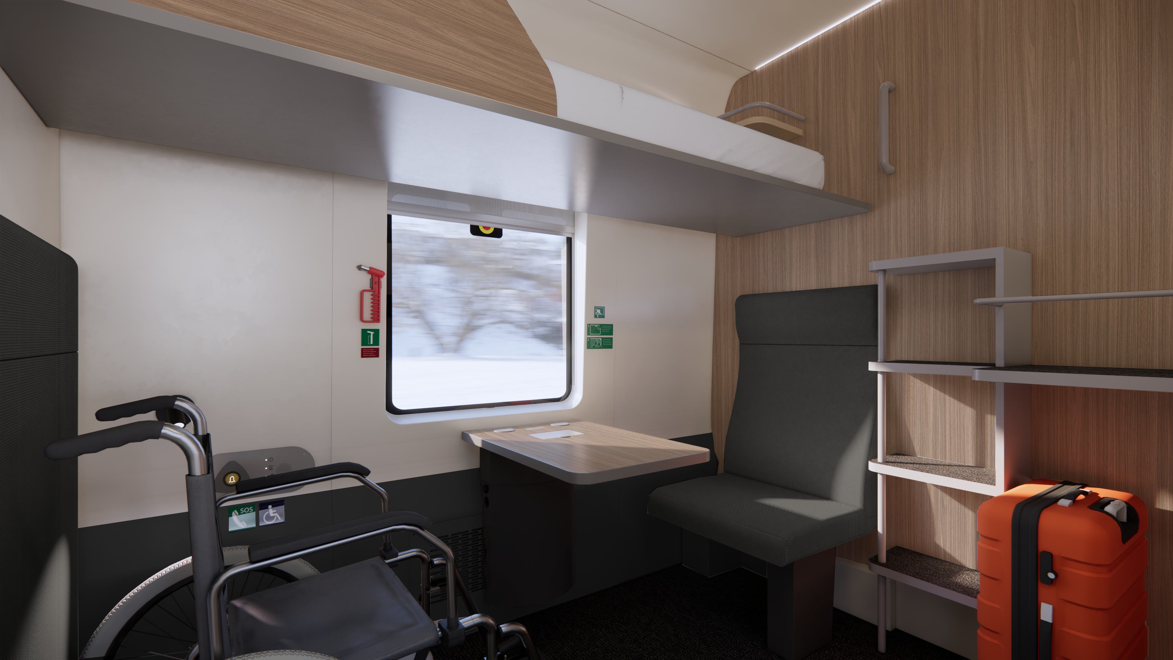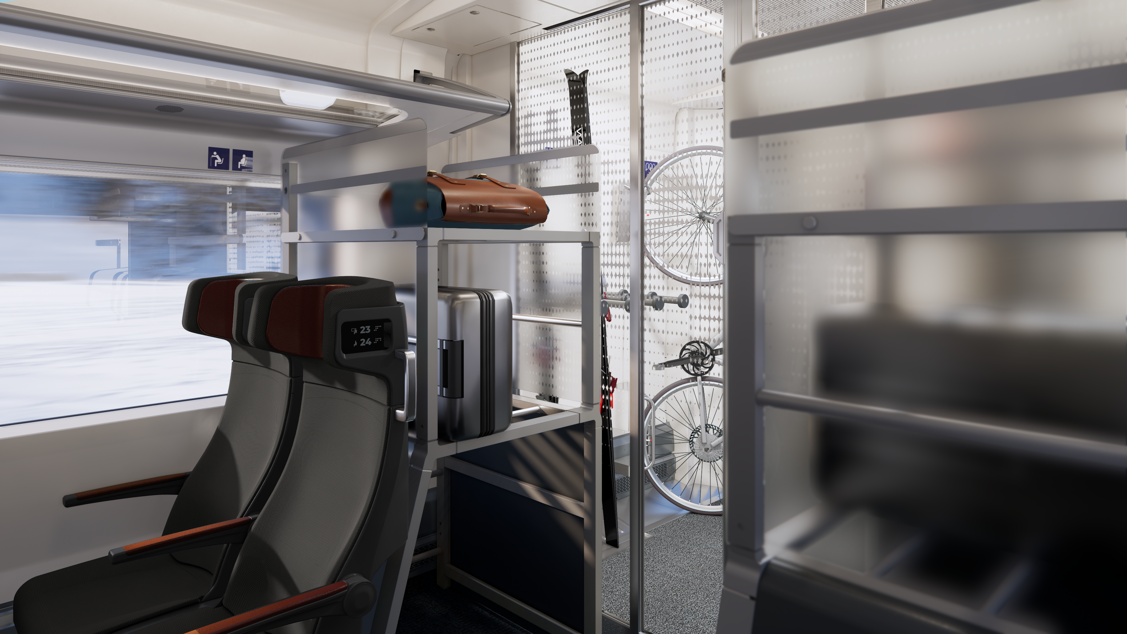 De nya tågen har flera olika kupélösningar: familjekupéer, premiumkupéer med egen dusch, singelkupéer för en privat miljö och tillgänglighetsanpassade kupéer för resenärer med rörelsehinder. Ombord finns även fällbara stolar i business class stil, ergonomiska sittplatser, restaurang och bistro i lounge‑miljö samt gott om förvaring för väskor, skidor och cyklar.