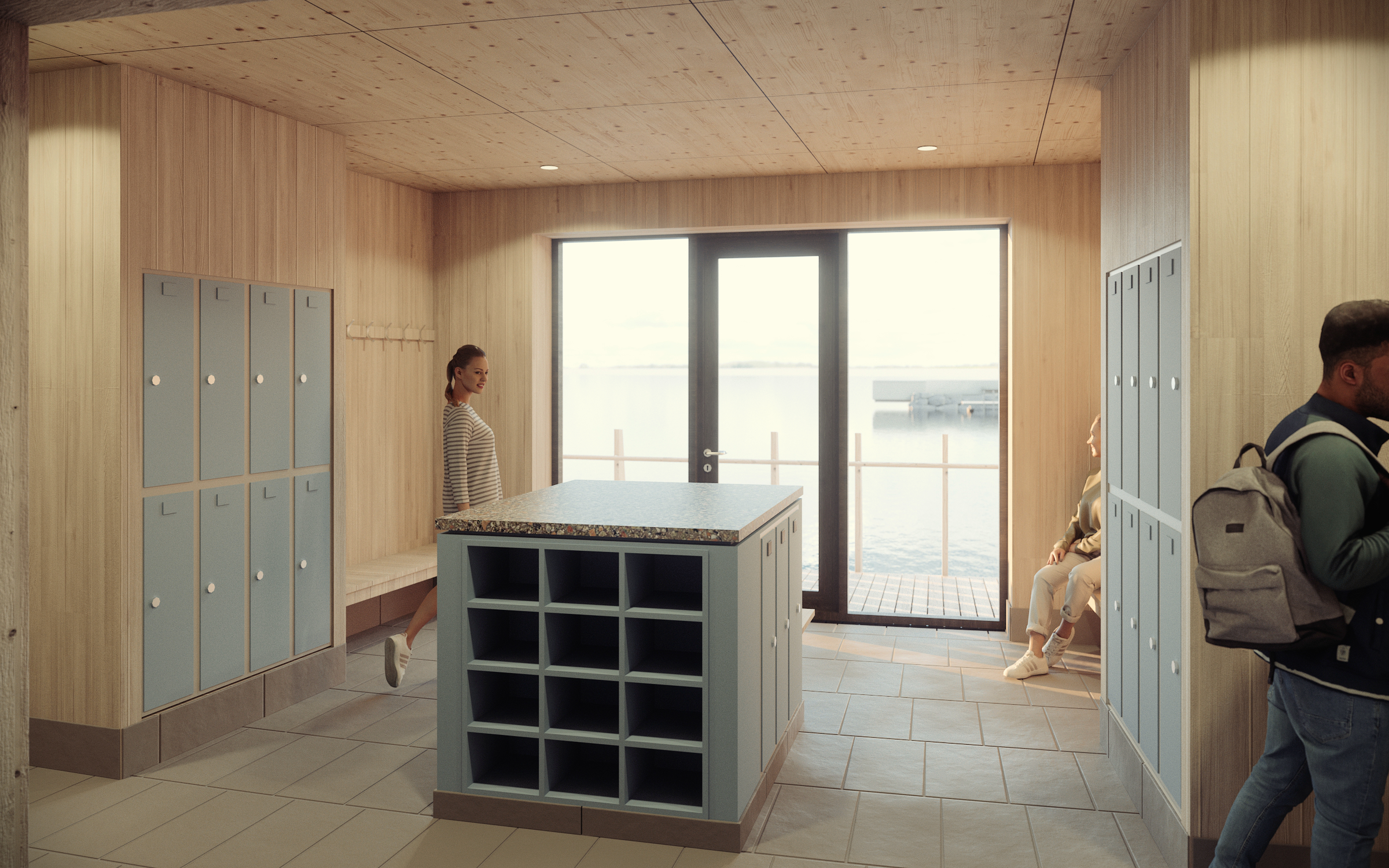 Det nya kallbadhuset planeras med en gemensam bastu med utsikt över Växjösjön, badbryggor och uppehållsytor, omklädnings- och duschmöjligheter, teknikutrymme och förråd.