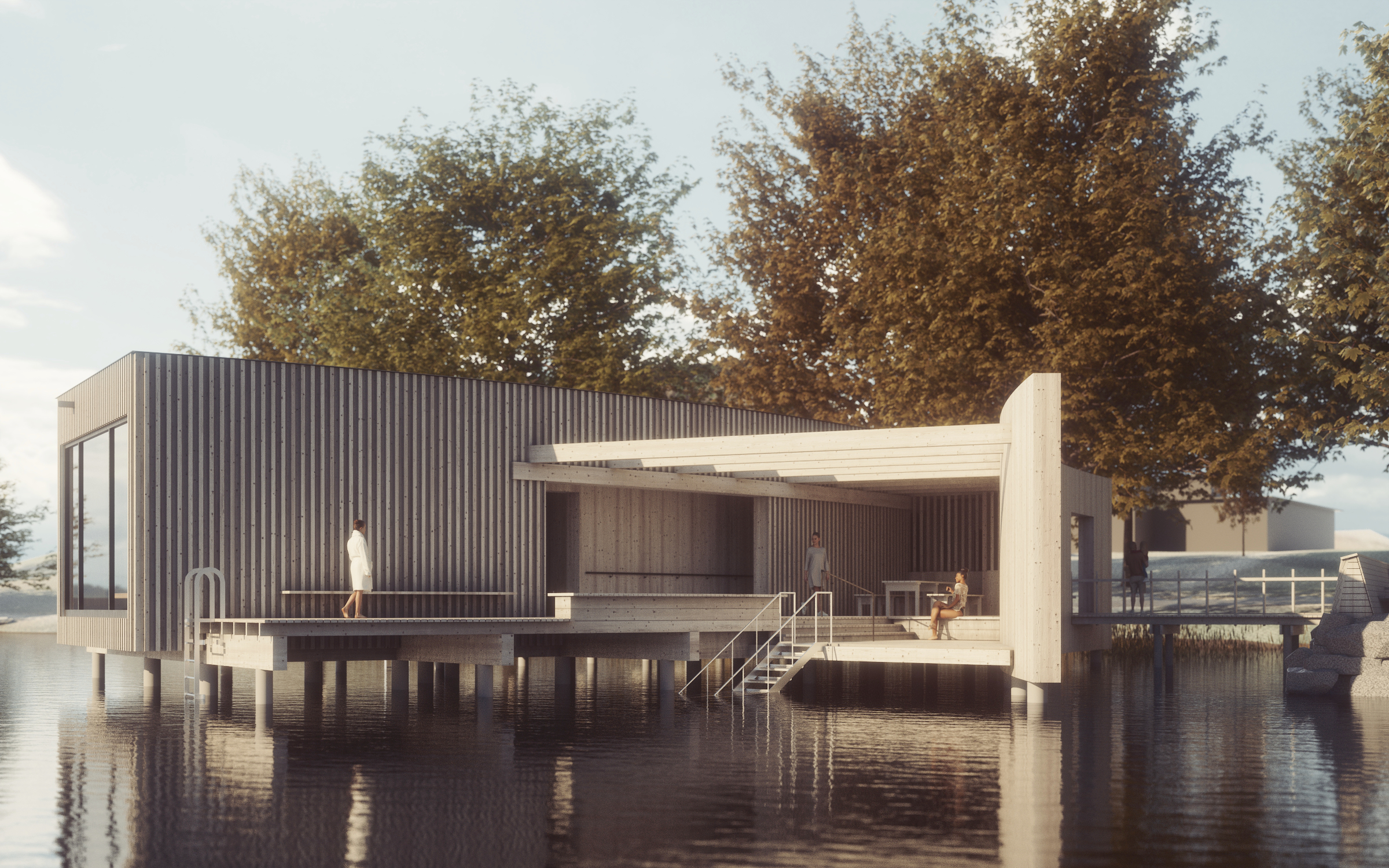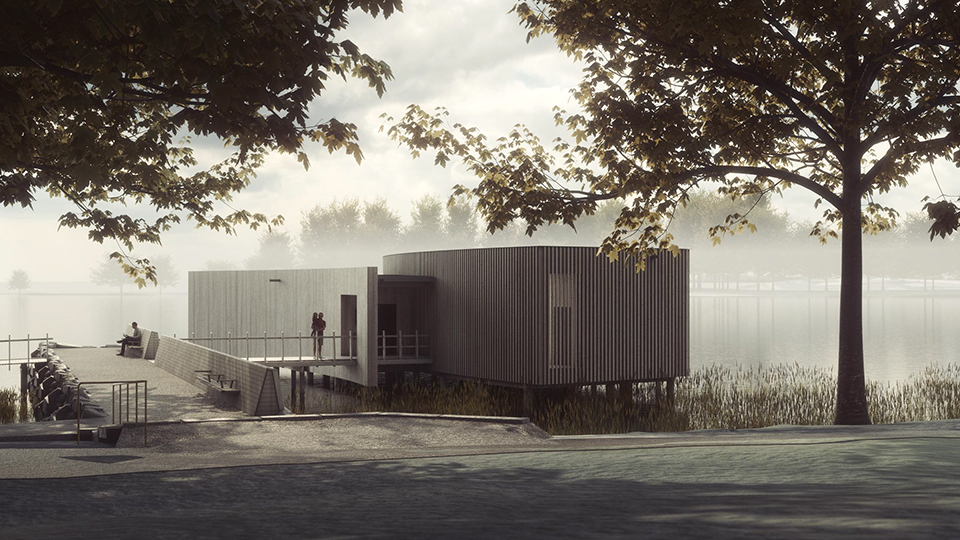 Nu visas de första bilderna på hur kallbadhuset kan komma att se ut. Visualiseringarna visar hur byggnaden är tänkt att se ut från olika vinklar i den omgivande miljön.
