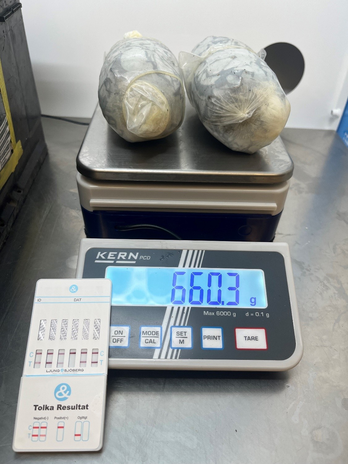 Den 26 december 2025 kom två män 45 och 49 år resande i en finskregistrerad personbil från Danmark via Öresundsbron till Lernacken i Sverige. Chauffören uppgav att de hade varit i Hamburg och besökt hans syster. Nu var männen på väg hem till Helsingfors i Finland. I det inledande samtalet upplevde tullinspektören chauffören som mycket tillmötesgående, inställsam och nervös och tog ut bilen för en djupare kontroll.