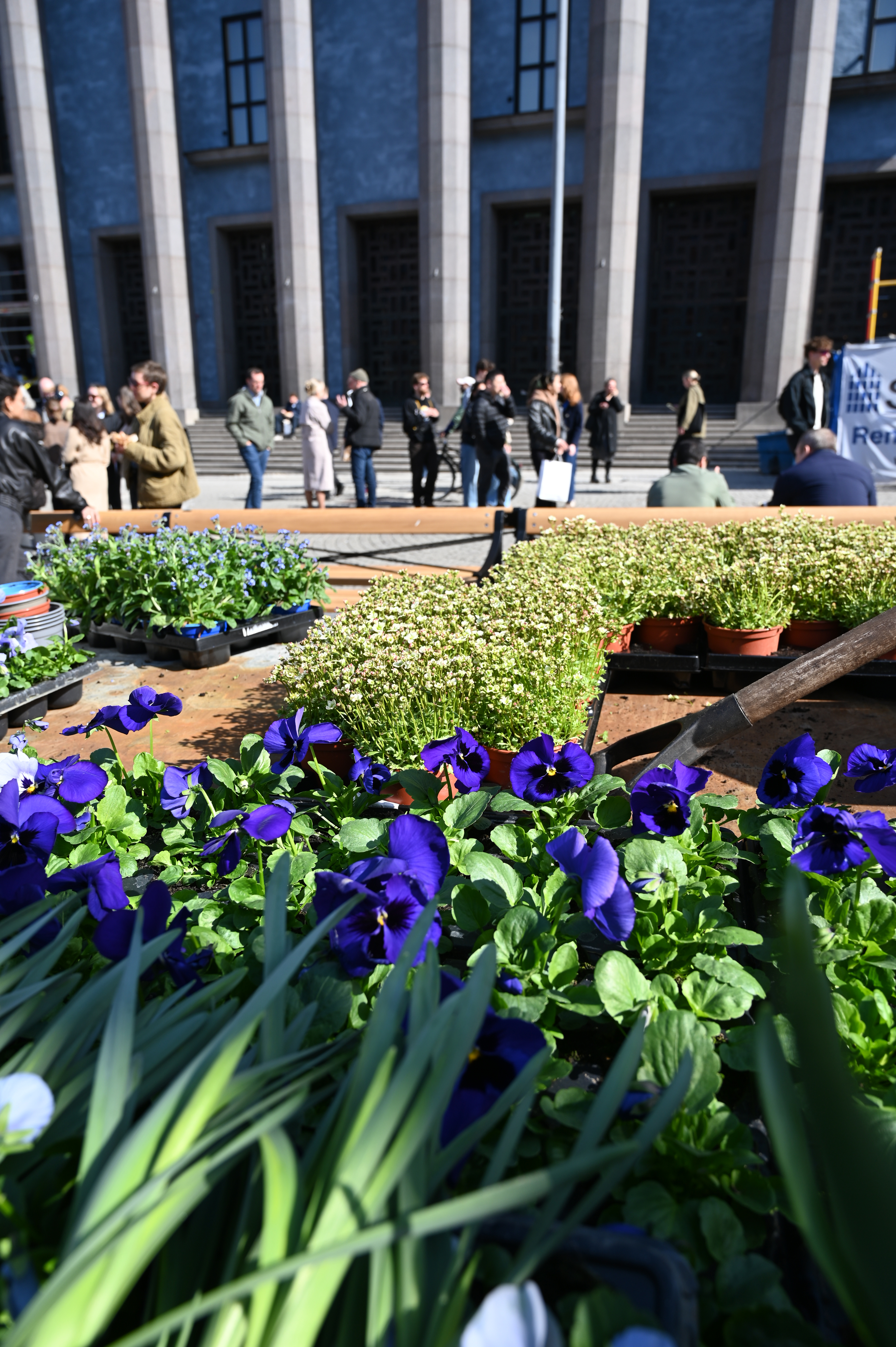 Blommor ur stadens blomsterprogram 2026 framför Konserthuset på Hötorget. Foto: Sam Victorin