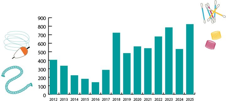 Situationen ser bättre ut längs Östersjökusten. Under 2025 var medianvärdet 15 skräpföremål per 100 meter strand, vilket ligger under EU:s gränsvärde för god miljöstatus. Mängden fiskerelaterat skräp är betydligt mindre här, däremot hittas mer skräp som går att koppla till strandbesökare – fimpar, snus och plastförpackningar från chips och godis.