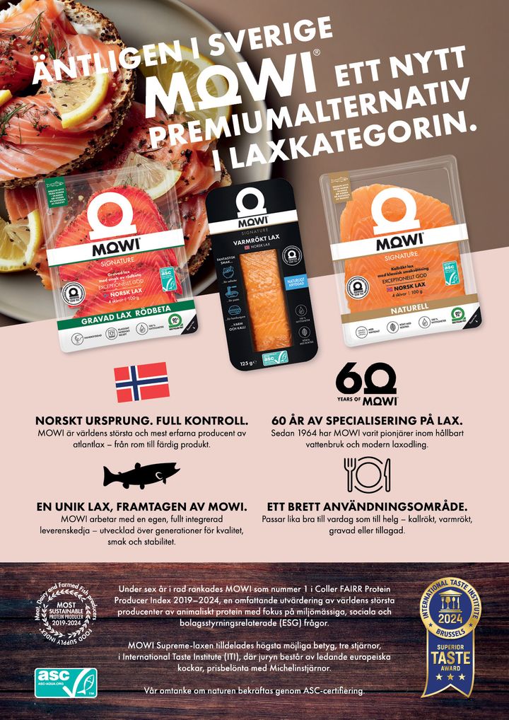 MOWI gör sin debut i Sverige. Sortimentet består av 14 laxprodukter