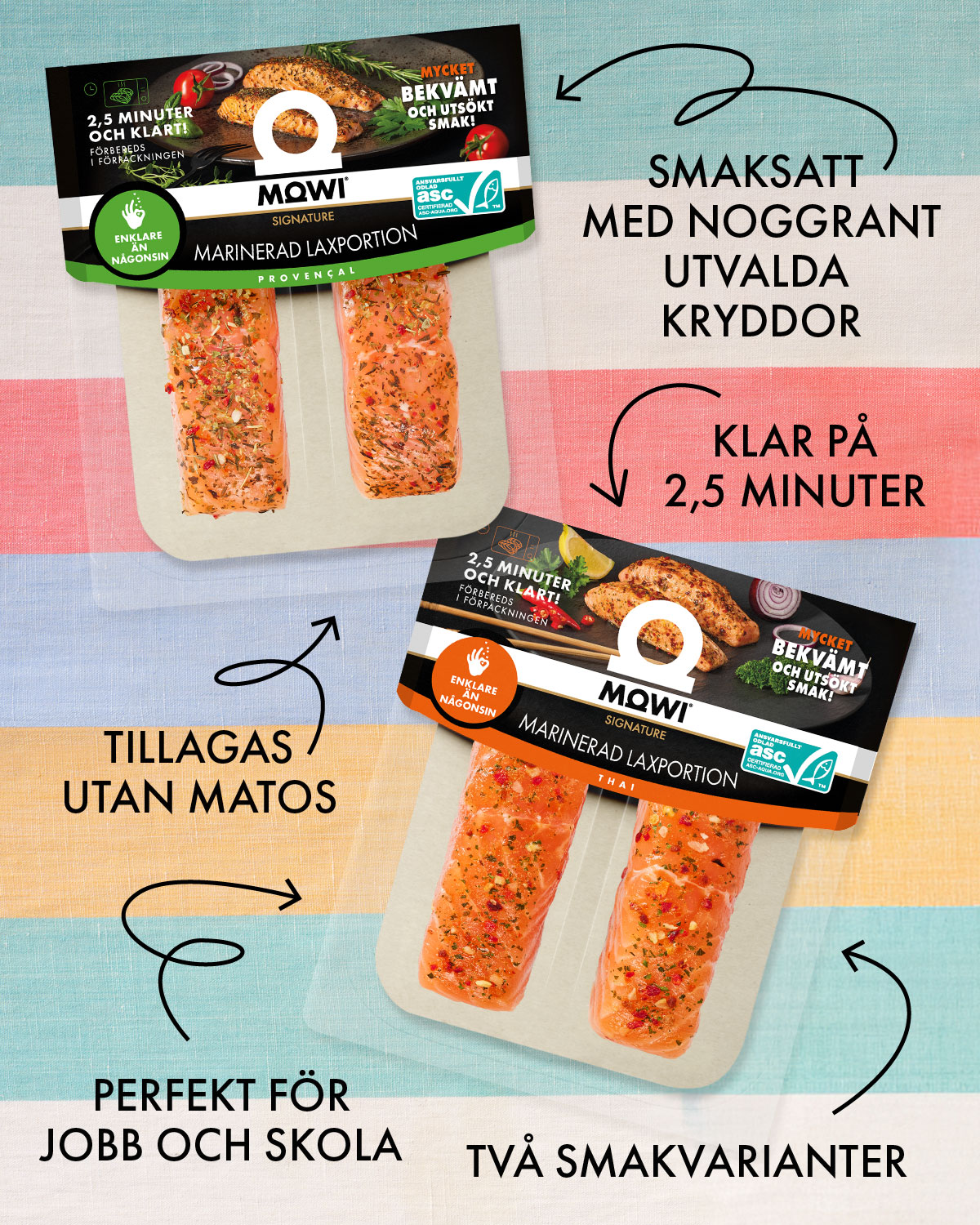 – Svenskarna hör till de mest medvetna konsumenterna i Europa, säger Jorgen Lind, Sales Manager Retail MOWI Sweden AB. – De lägger särskild vikt vid produkternas kvalitet och deras smakegenskaper. Även certifieringar som ASC, som garanterar att råvarorna kommer från hållbara källor, är mycket viktiga för dem. Samtidigt söker den svenska konsumenten mångsidiga produkter som passar vid olika tillfällen, samt format som gör det enklare att upprätthålla en hälsosam kost med betydande tidsbesparingar. MOWI:s produkter uppfyller alla dessa förväntningar, framhåller han.