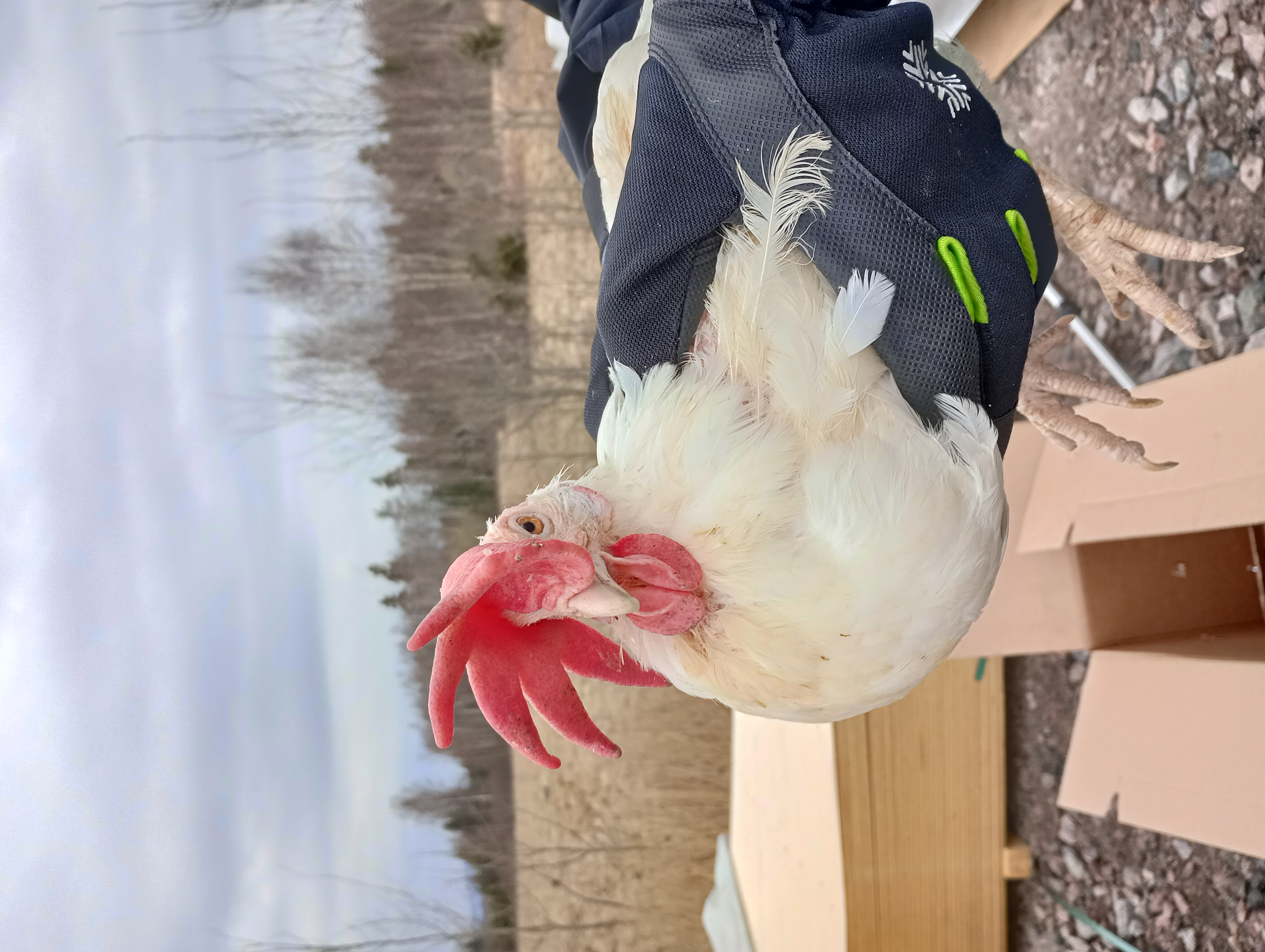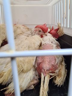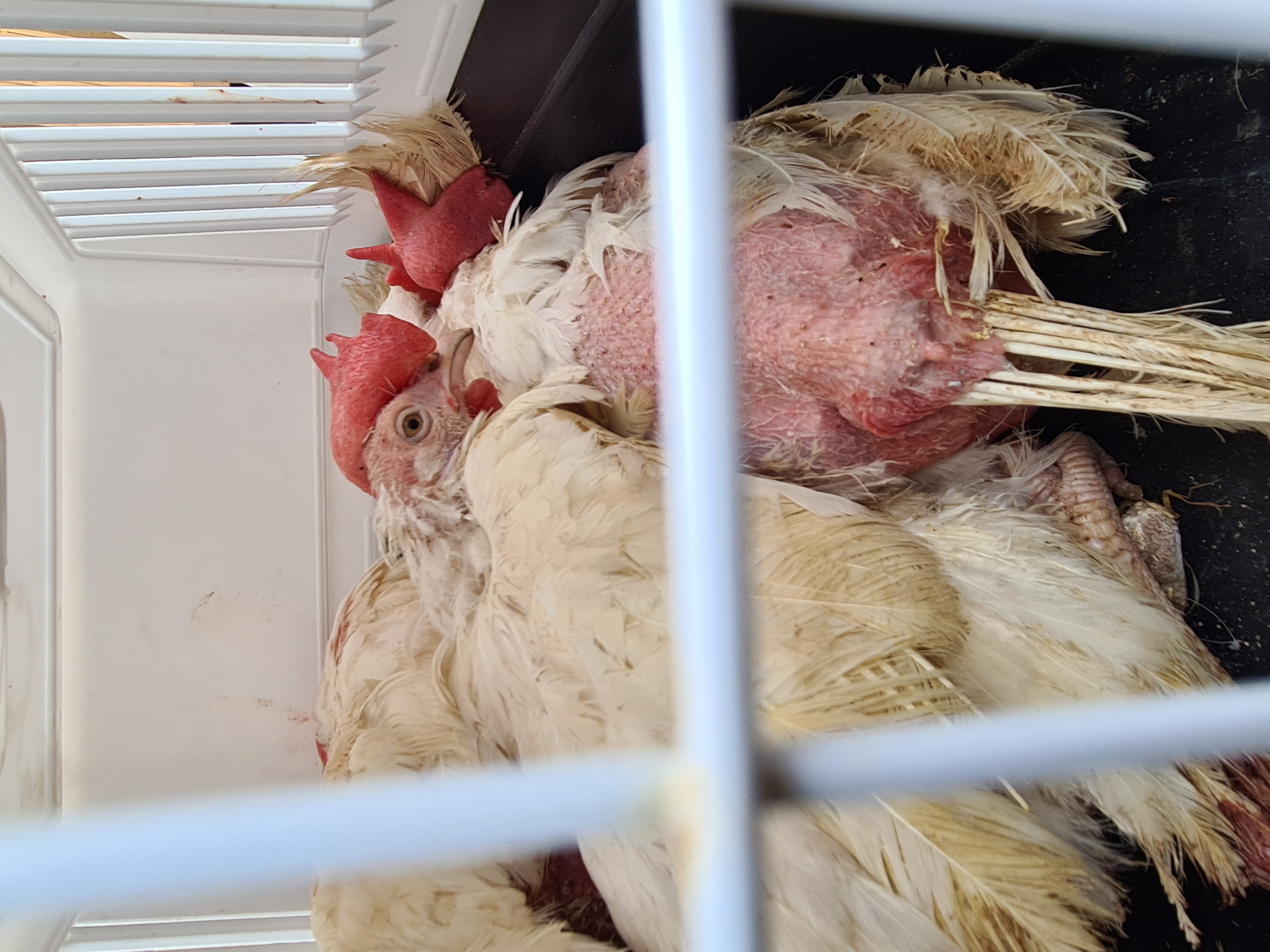 – Hönorna är medtagna efter olyckan men också efter livet i äggindustrin. De har stora kala partier och har troligen utsatts för fjäderplockning och hackning. Flera har också svullna bukar vilket tyder på att de har eller riskerar att utveckla äggledar- och/eller bukhinneinflammation. Detta är otroligt smärtsamt men vanligt förekommande hos hönor som utnyttjas för äggproduktion, säger Jonna Kallaste Håkansson.