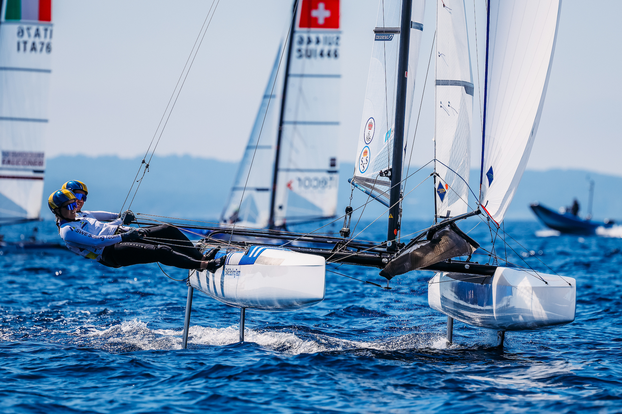 Årets andra Sailing Grand Slam drog igång igår (måndag) i Hyères på franska rivieran. Efter två dagars racing av totalt sex är det Vilma Bobeck/Ebba Berntsson i 49erFX som börjat bäst av svenskarna. Trots de lätta vindarna, som inte är deras bästa förhållande, ligger de precis utanför pallen på en fjärde plats.