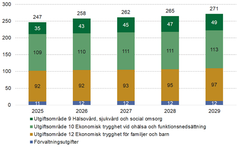 Samtidigt minskar socialförsäkringens andel av utgifterna över tid, år 1995 stod till exempel socialförsäkringen för 25 procent av statens samlade utgifter – år 2026 väntas motsvarande siffra bli 16,9 procent.