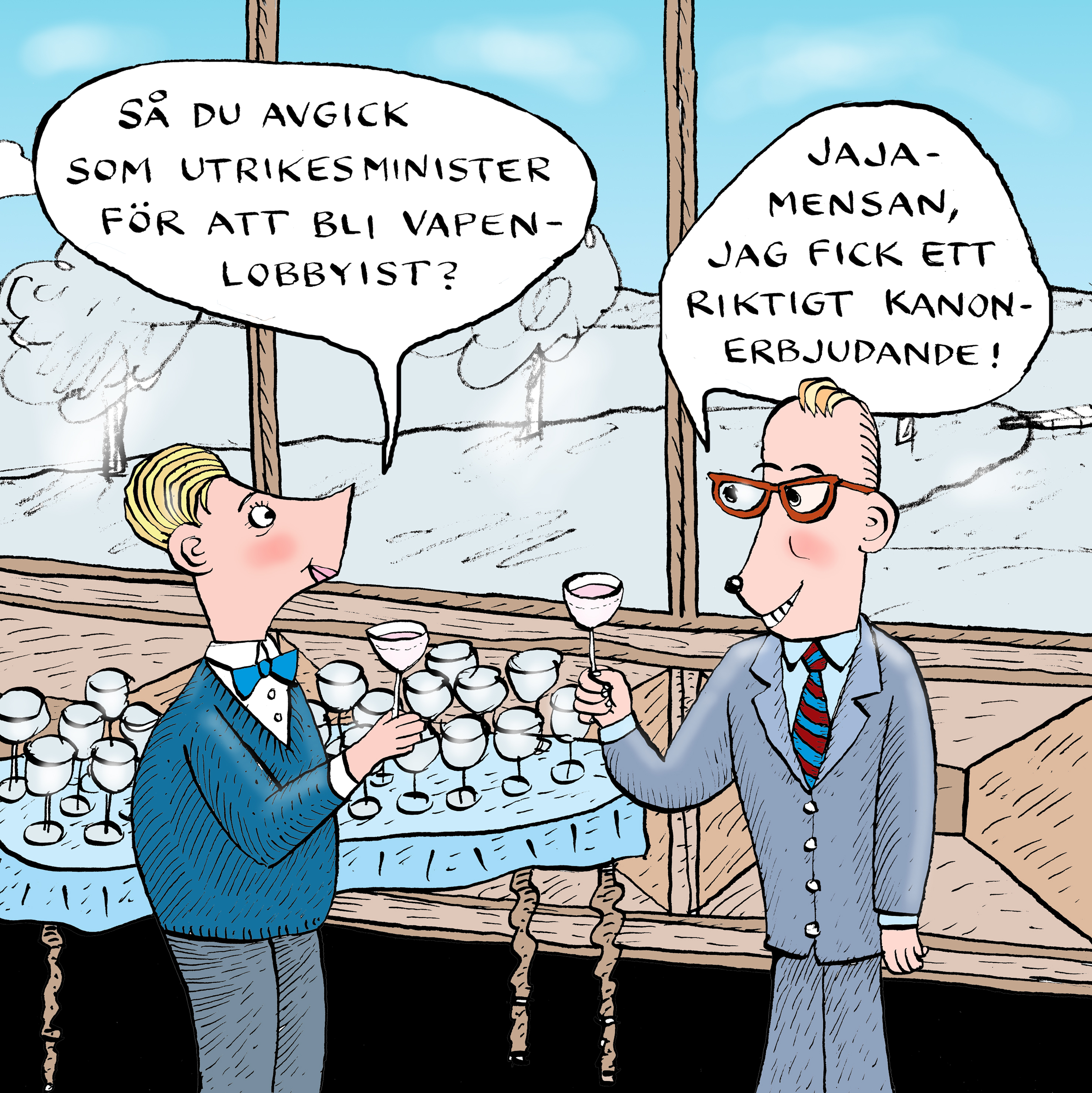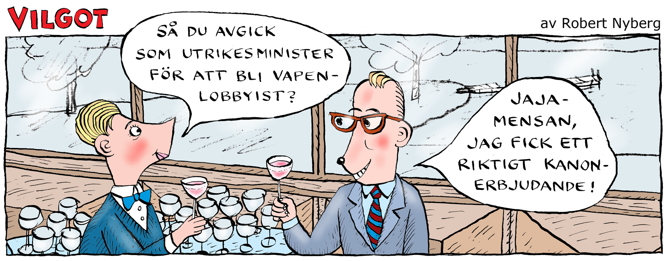 Sveriges tidigare utrikesminister under Natoprocessen Tobias Billström tilldelas utmärkelsen Årets vapenvärvning 2025. Billström lämnade sin roll som utrikesminister hösten 2024, och var då ansvarig minister för svensk vapenexport. Drygt ett år senare, i november 2025 kom nyheten att Billström får ett toppjobb på Nordic Air Defence, ett vapenföretag som specialiserar sig på högteknologiska vapen. Med kontakter och unika kompetenser, inte minst vad gäller Sveriges relationer med Nato, kommer Billström att stärka vapenindustrin och är således en mycket värdefull värvning för den svenska vapenlobbyn.