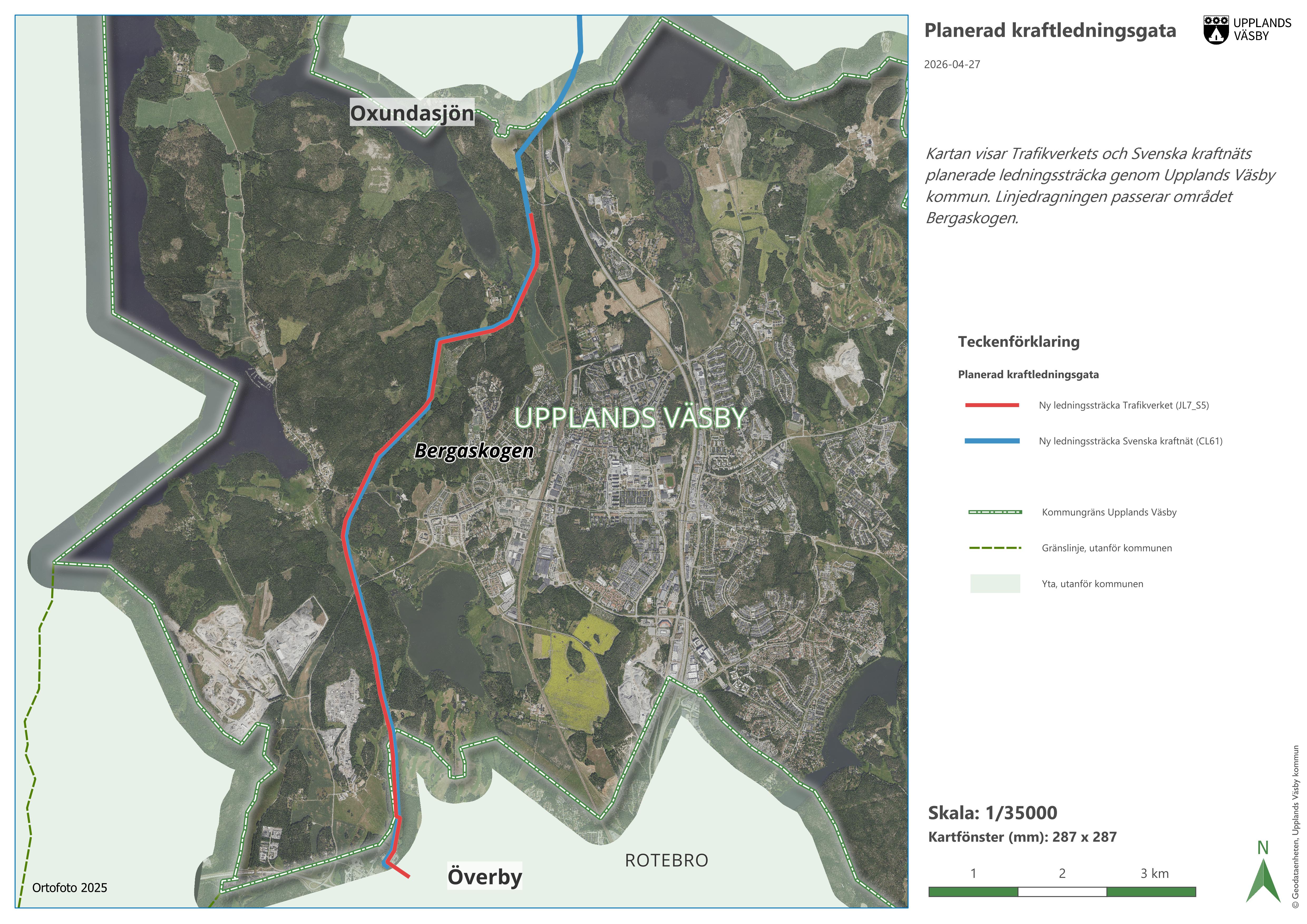 Trafikverket har som mål att skapa en gemensam ledningsgata med Svenska kraftnät som sedan tidigare har en ansökan inne för prövning hos Energimarknadsinspektionen. Om planerna går igenom så får Väsby en bredare kraftledningsgata än i dag mellan Oxundasjön i norr och Överby i söder. Sträckan skulle i så fall gå genom naturkänsliga Bergaskogen i Runby. Kommunfullmäktige beslutade i december att utreda Bergaskogen som ett nytt naturreservat.