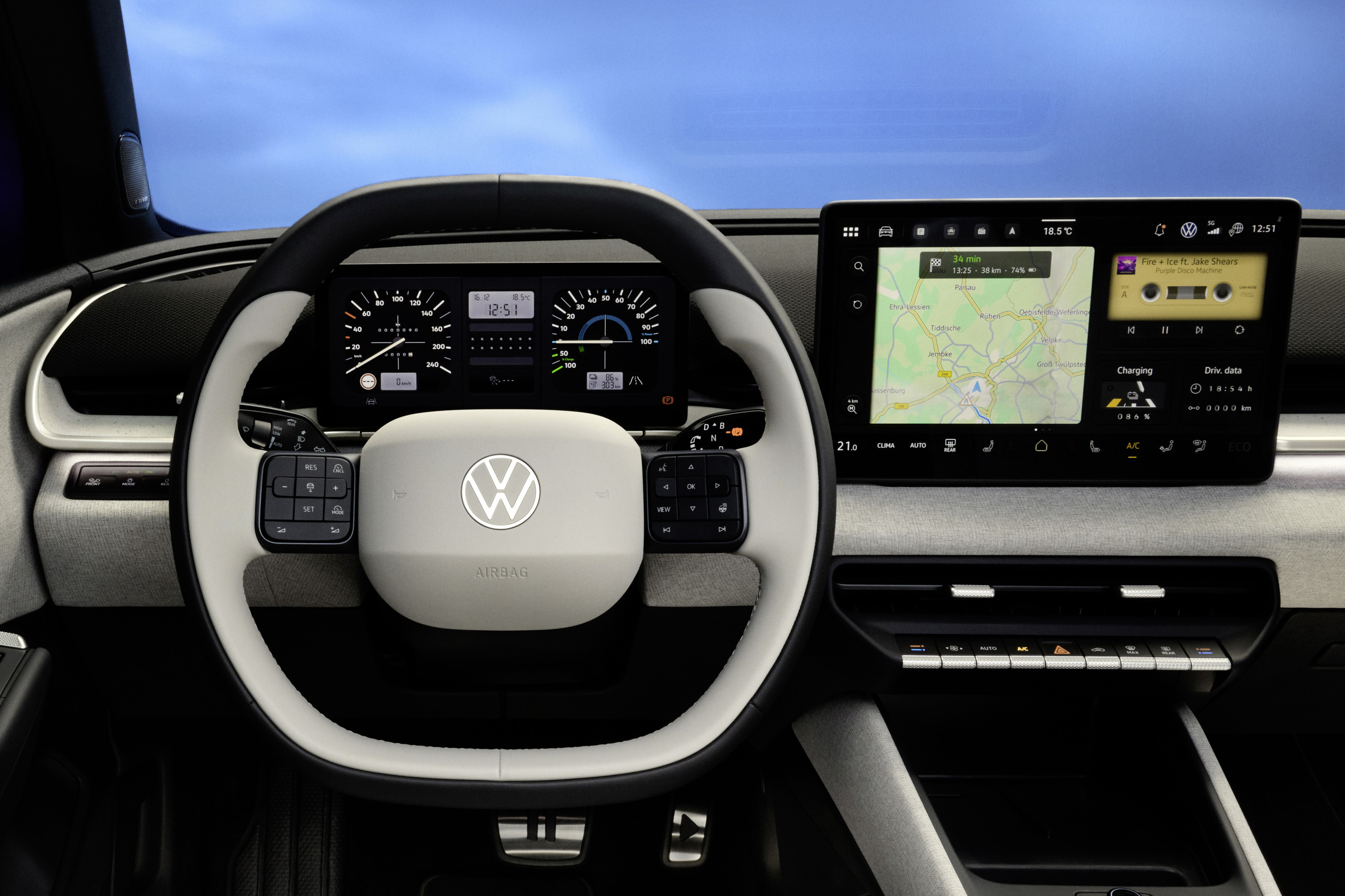 Om föraren aktiverar retrodisplayen med View-knappen på ratten förvandlas instrumenten till den stil som finns i de senare versionerna av första generationen Golf.