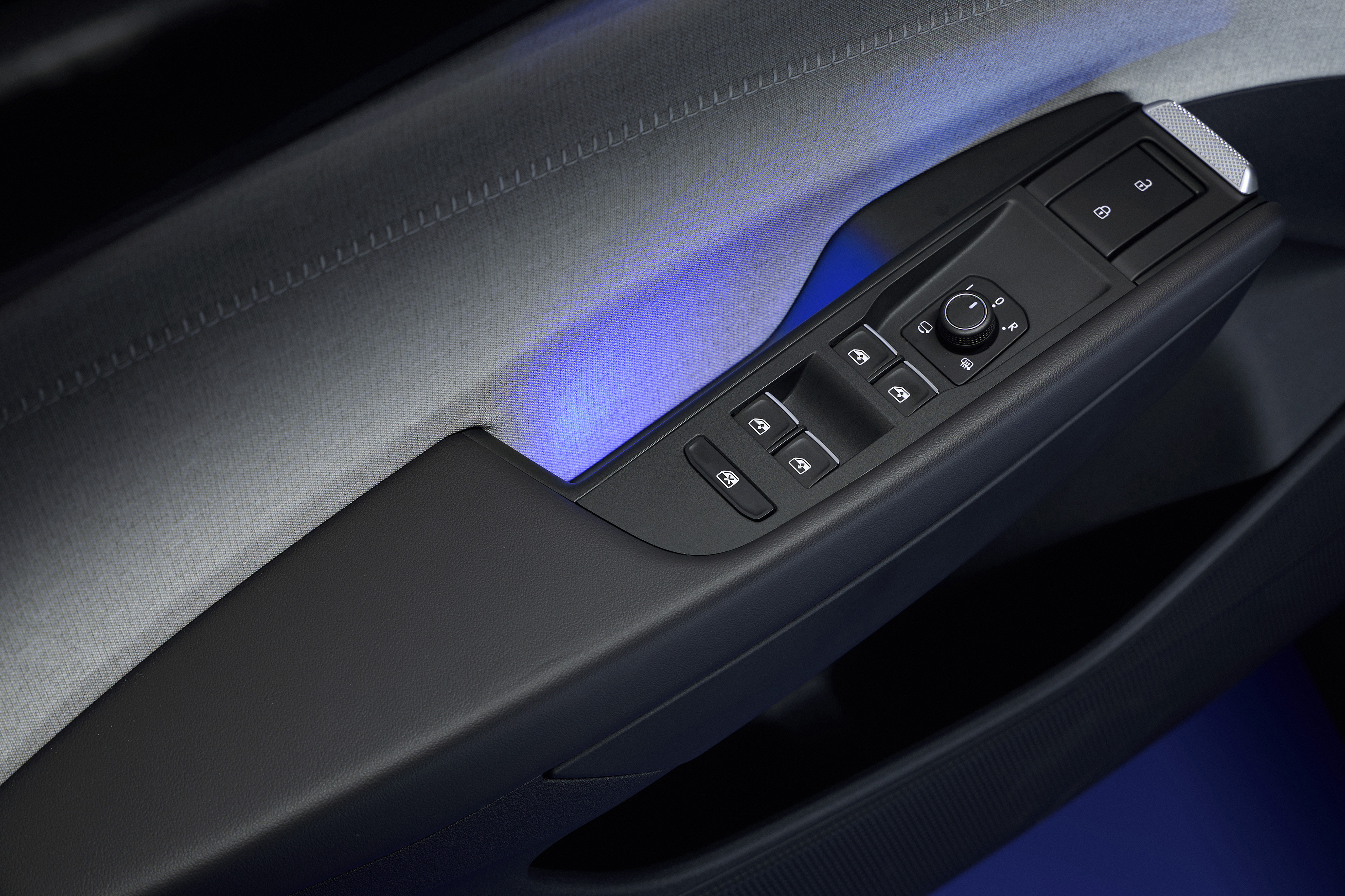 Även multifunktionsratten med sina överskådligt placerade knappsatser har fått en helt ny design. Själva ratten är avfasad upptill och nedtill. Det finns fyra knappar för fönsterhissarna.