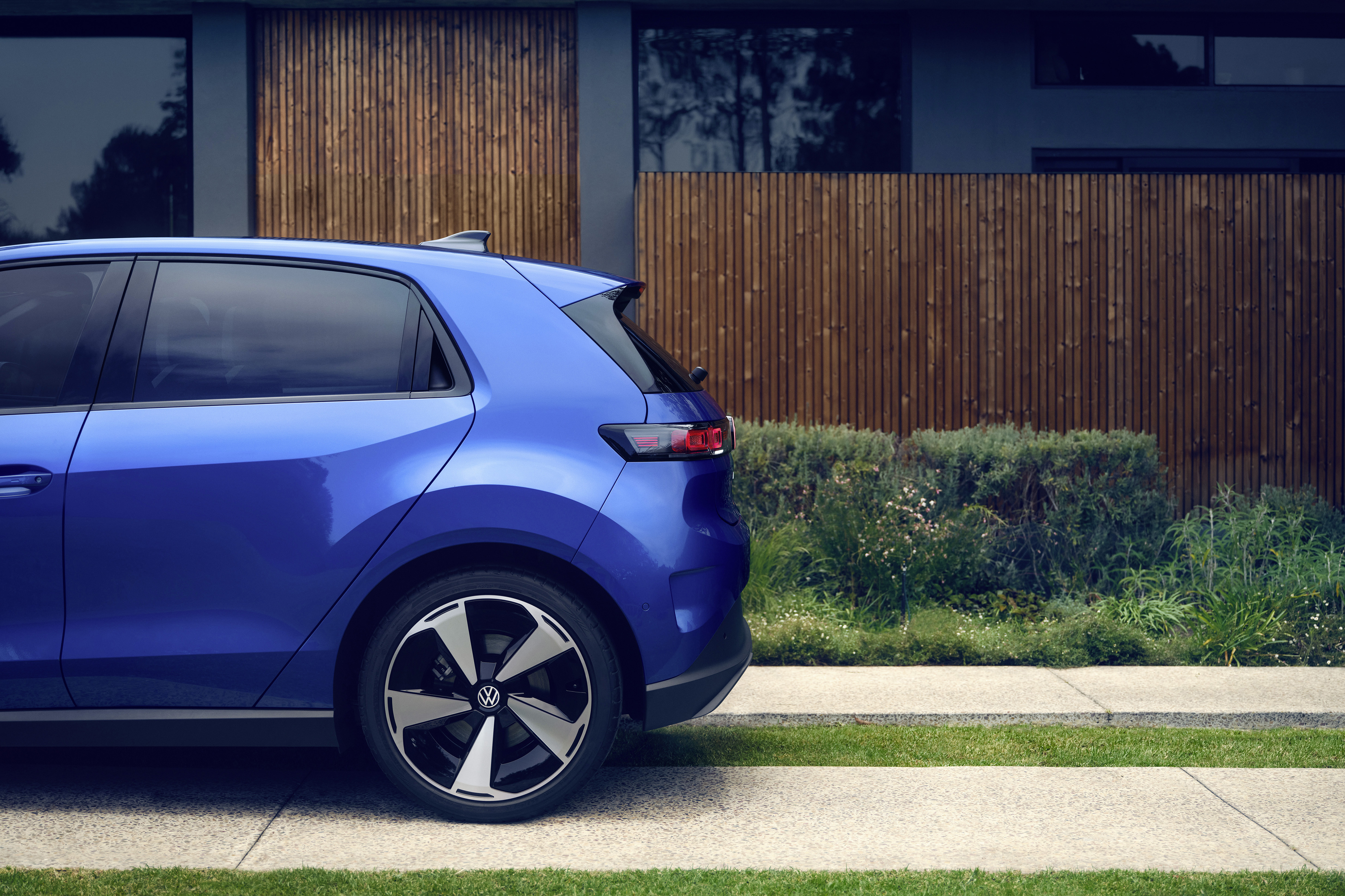 I IQ.LIGHT-versionen av baklyktorna har de båda yttre, nästan rektangulära LED-elementen en 3D-optik. På så sätt ser de ut att sväva fritt i bakpartiet. I IQ.LIGHT-versionen är även de tvärgående banden i bakljusbalken och VW-logotypen belysta. (beroende på utrustning).