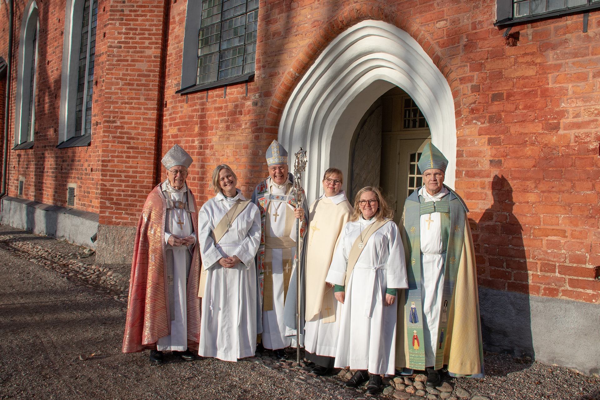 Biskop emeritus Jonas Jonson, diakon Sanna Laukkanen, biskop Johan Dalman, pastorsadjunkt Anna Brannius, diakon Sara Fintling och biskop emeritus Hans-Erik Nordin.
