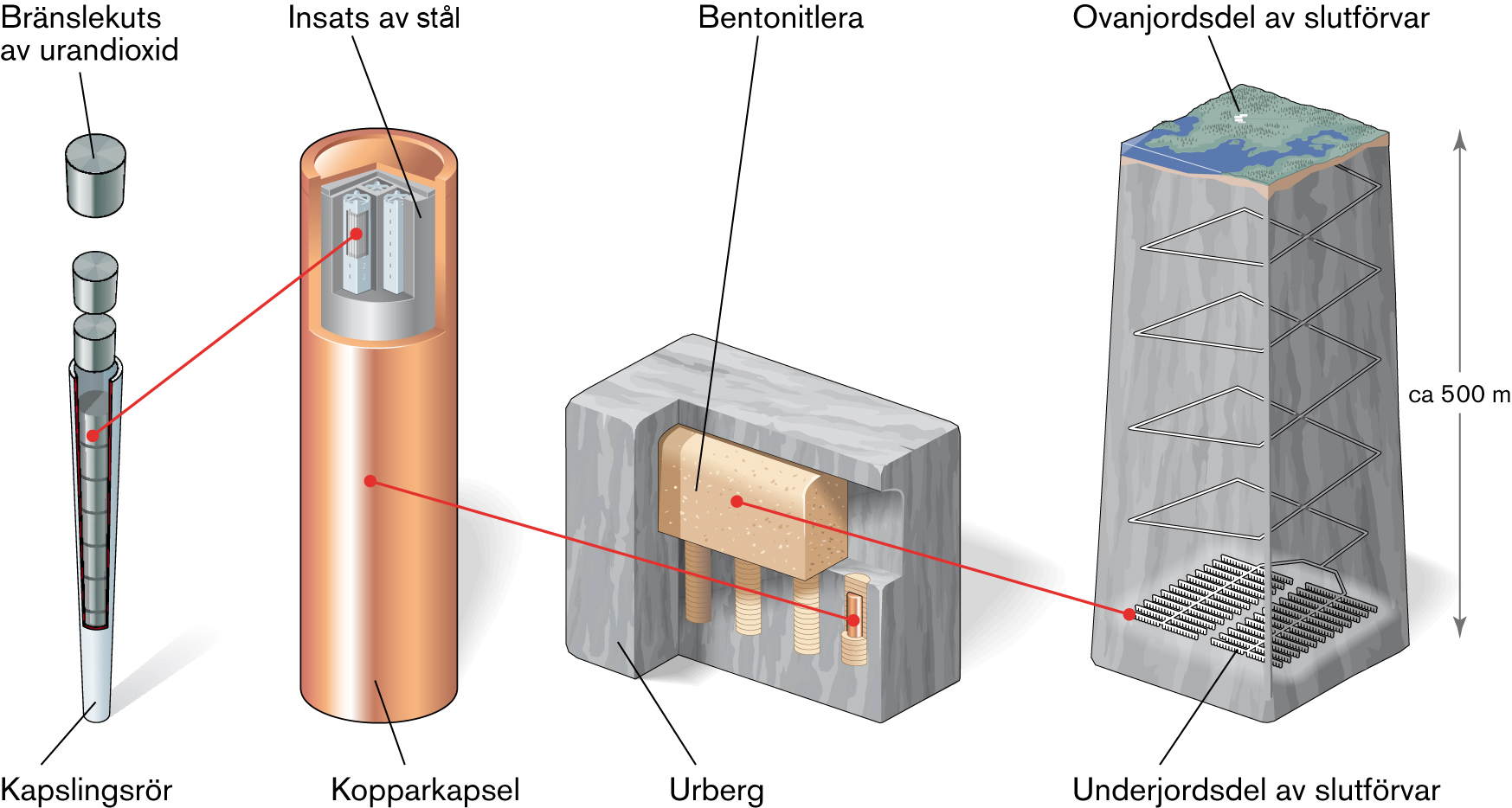 Den första barriären är kopparkapseln med en insats av stål. Kapseln är konstruerad för att stå emot korrosion och den mekaniska påverkan som kan uppstå som en följd av rörelser i berget nere i Kärnbränsleförvaret. Den andra barriären är bentonitlera. Leran är en buffert som skyddar kapseln mot rörelser i berget. Leran hindrar även vatten att strömma runt kapseln och fungerar som ett filter, om en kapsel skulle skadas. Den tredje barriären är urberget. Berget fungerar som ett filter och håller kvar radioaktiva ämnen i berget om en kapsel skulle skadas.